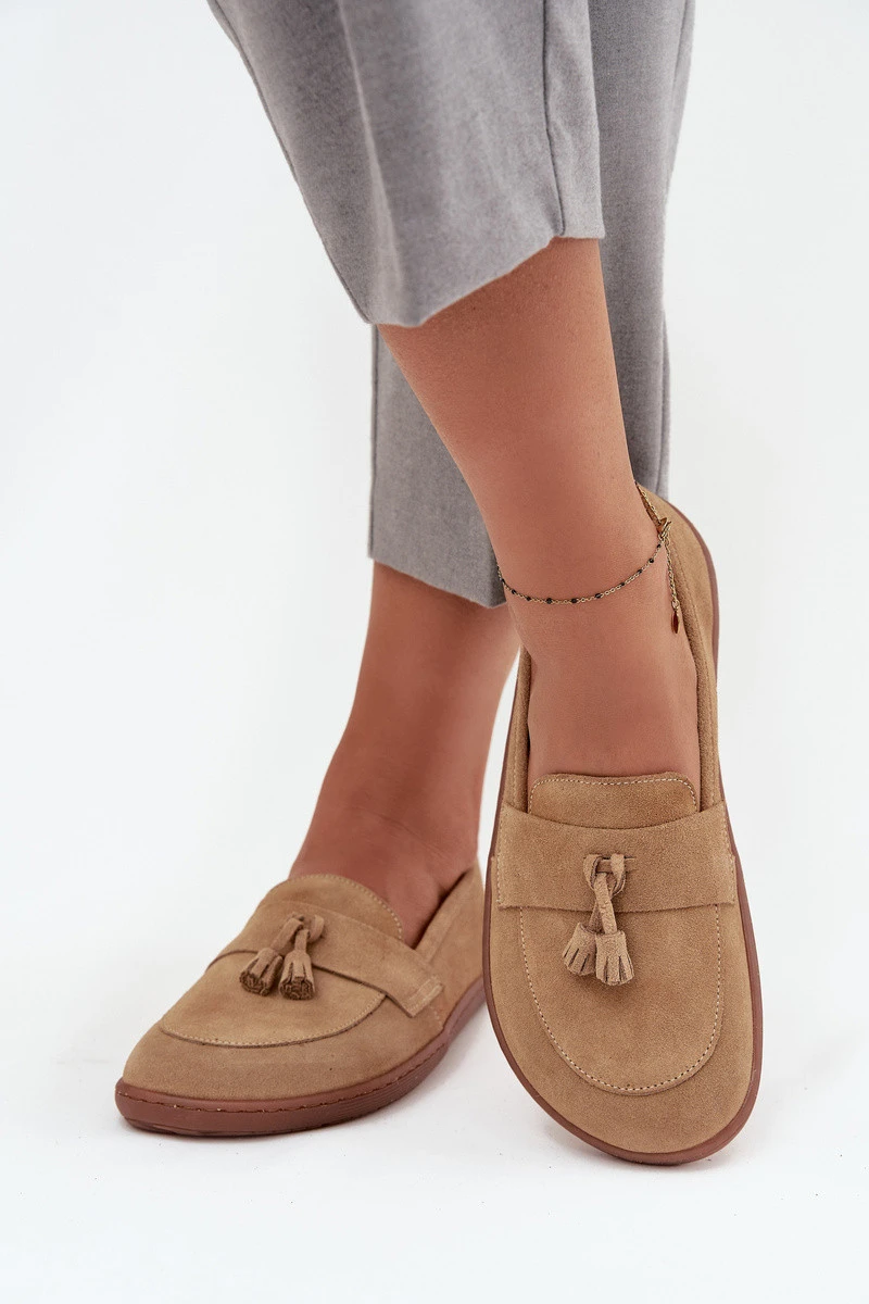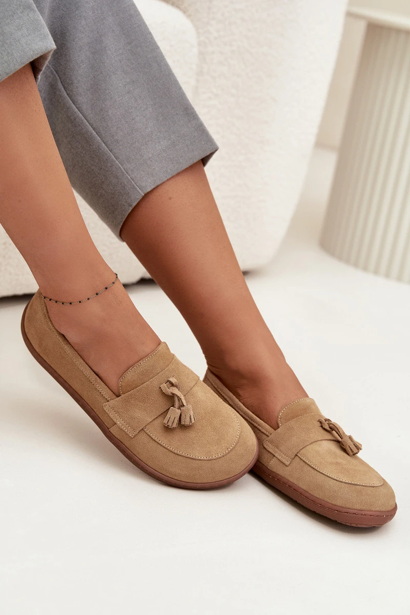 Kožené semišové mokasíny typu barefoot Zazoo – béžové