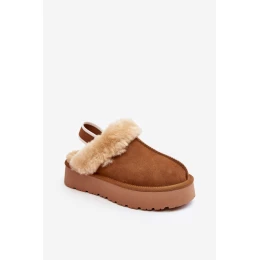 Kožené Semišové Pantofle Dámské Na Platformě S Kožíškem Camel model 21638811 - Boto