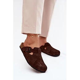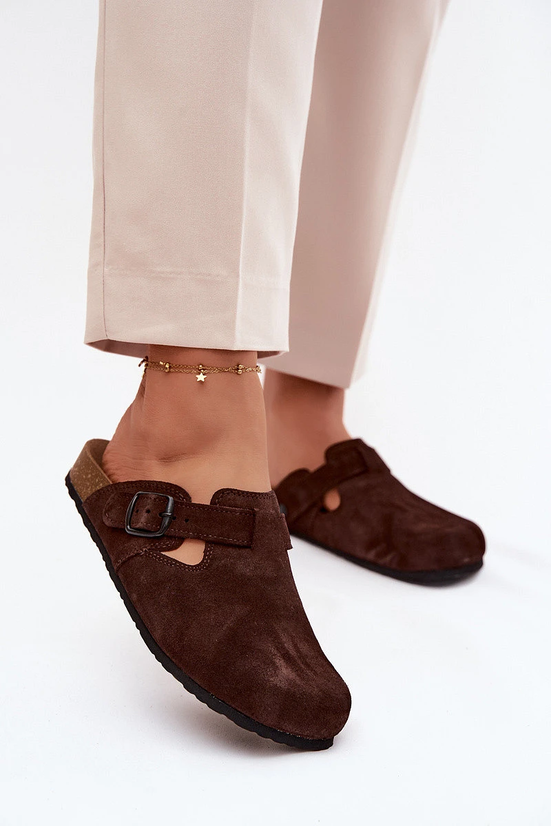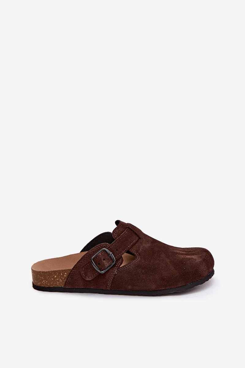 Kožené semišové pantofle model 22125810 s přezkou 1905 čokoládové - Zazoo
