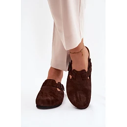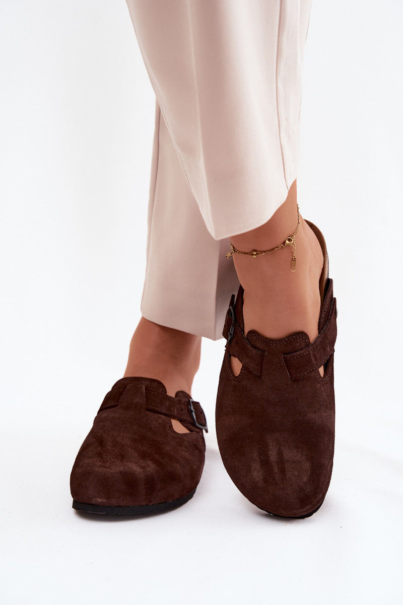 Kožené semišové pantofle Mule s přezkou Zazoo 1905 čokoládové