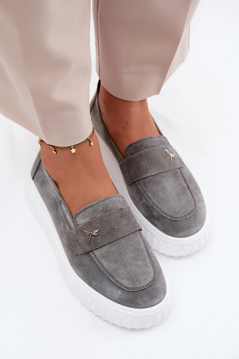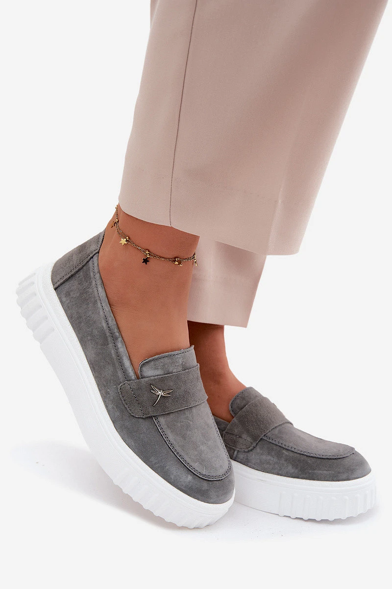Kožené Semišové Polobotky Dámské Na Platformě Tmavě Šedé model 22126225 - VINCEZA