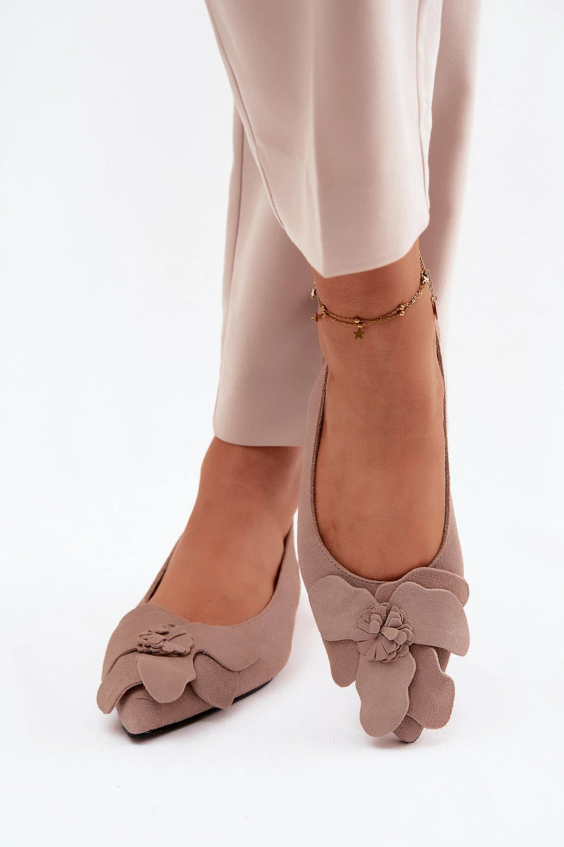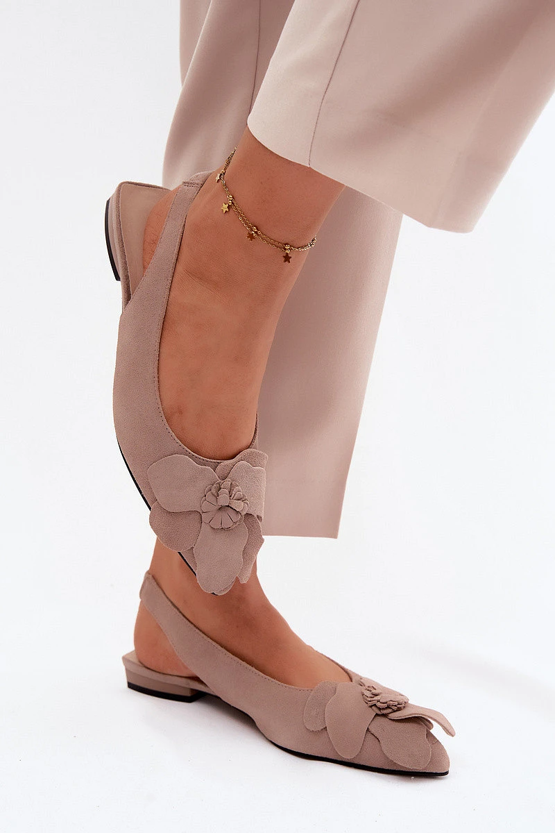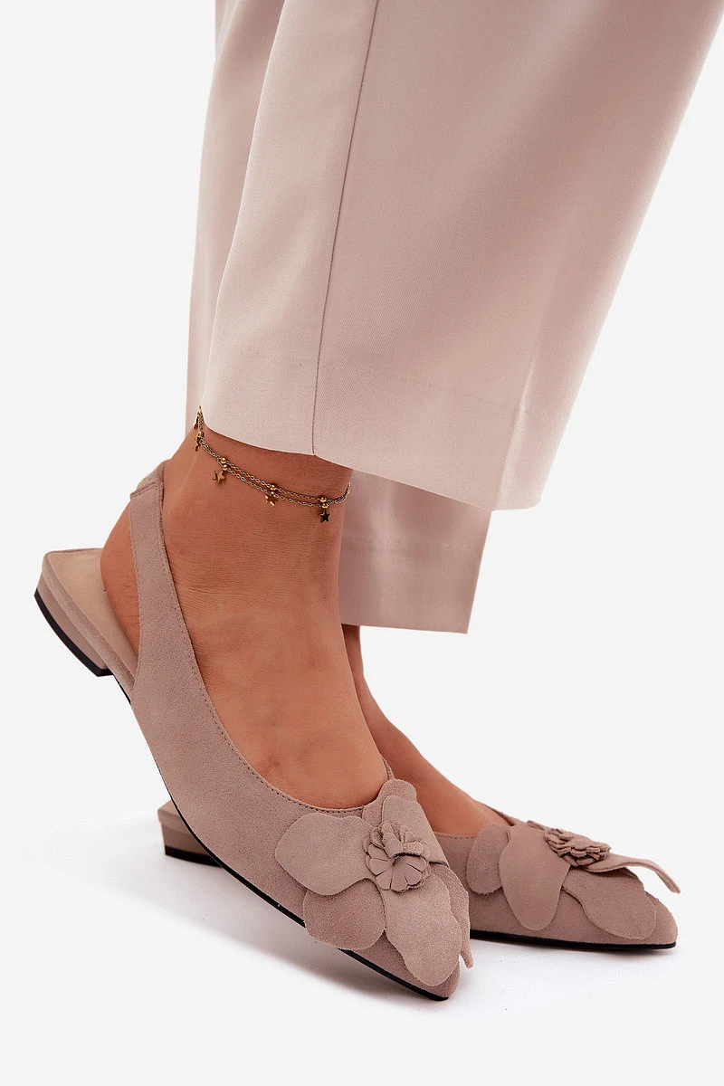 Kožené semišové sandály na plochém podpatku s ozdobným květem Vinceza Béžové