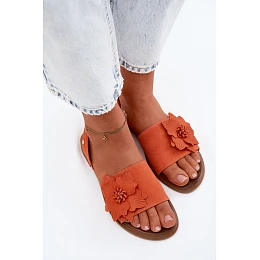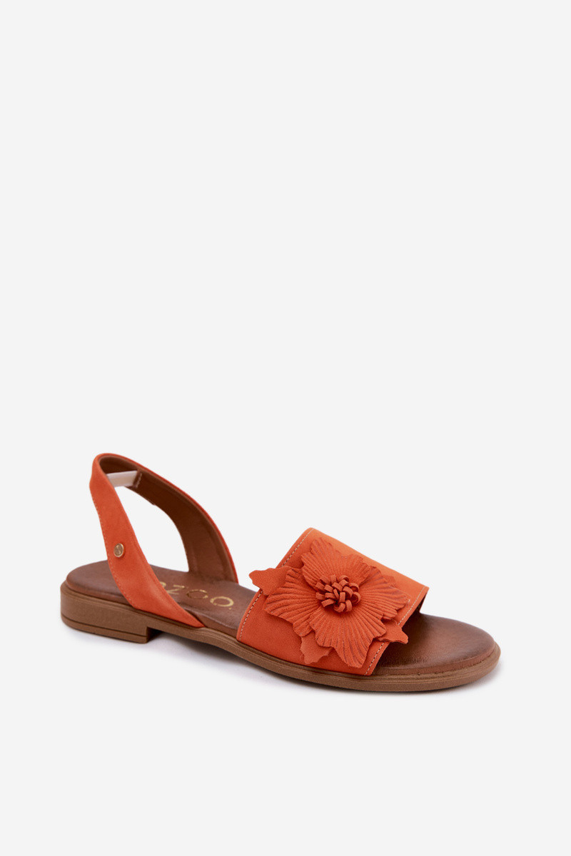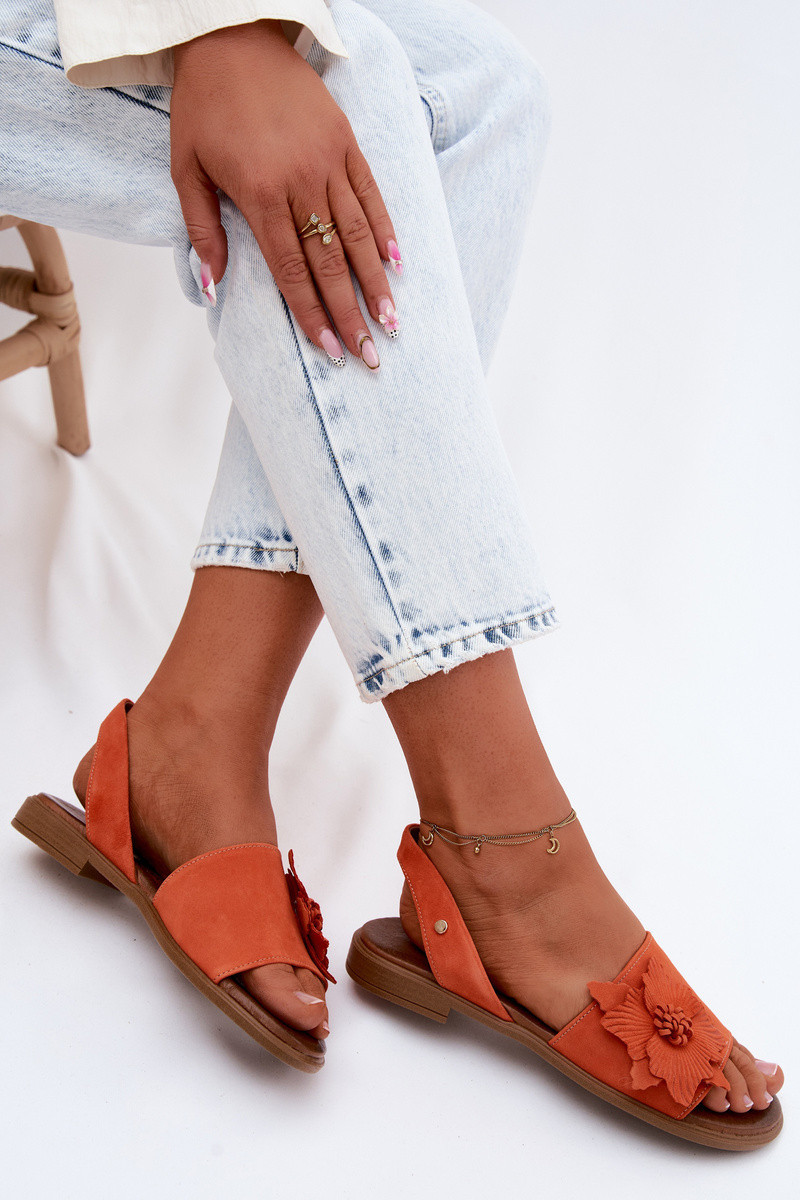 Kožené semišové sandály na plochém podpatku s ozdobným květem Zazoo 407471 Oranžové