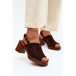 Kožené semišové sandály na podpatku Vinceza 39995 čokoládové