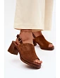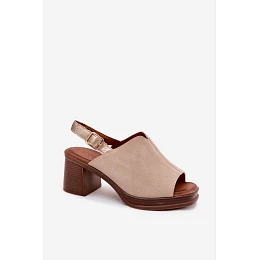 Kožené semišové sandály na podpatku Vinceza Béžové