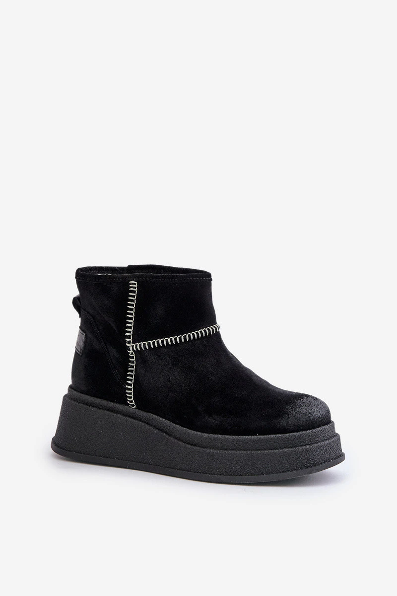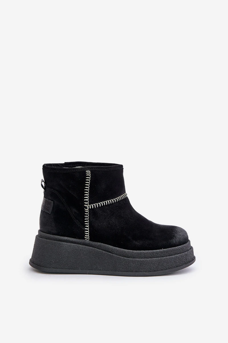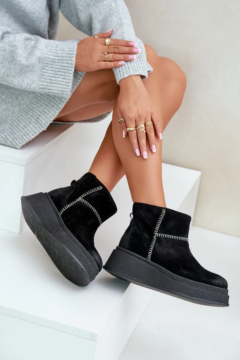 Kožené Semišové Sněhule Boty Na Platformě A Podpatku Hnědé Maciejka 06769-01 Černé