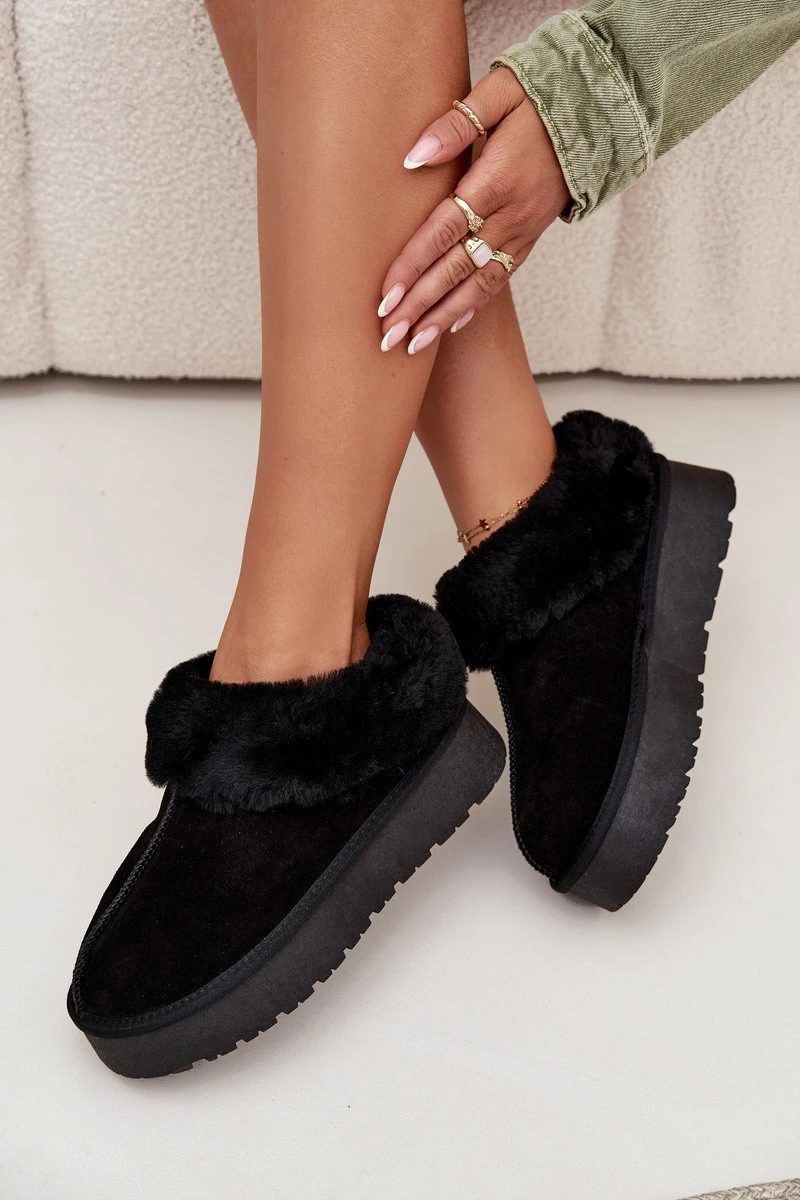 Dámské sněhule vyrobené z přírodní semišové kůže. Umístěné na platformě. Horní část holínky zdobí nadýchané kožíšek, který jim dodává jedinečný charakter. Tyto módní a stylové boty jsou ideální pro zimní dny, zaručující pohodlí a teplo. Při výběru velikosti se řiďte tabulkou velikostí.