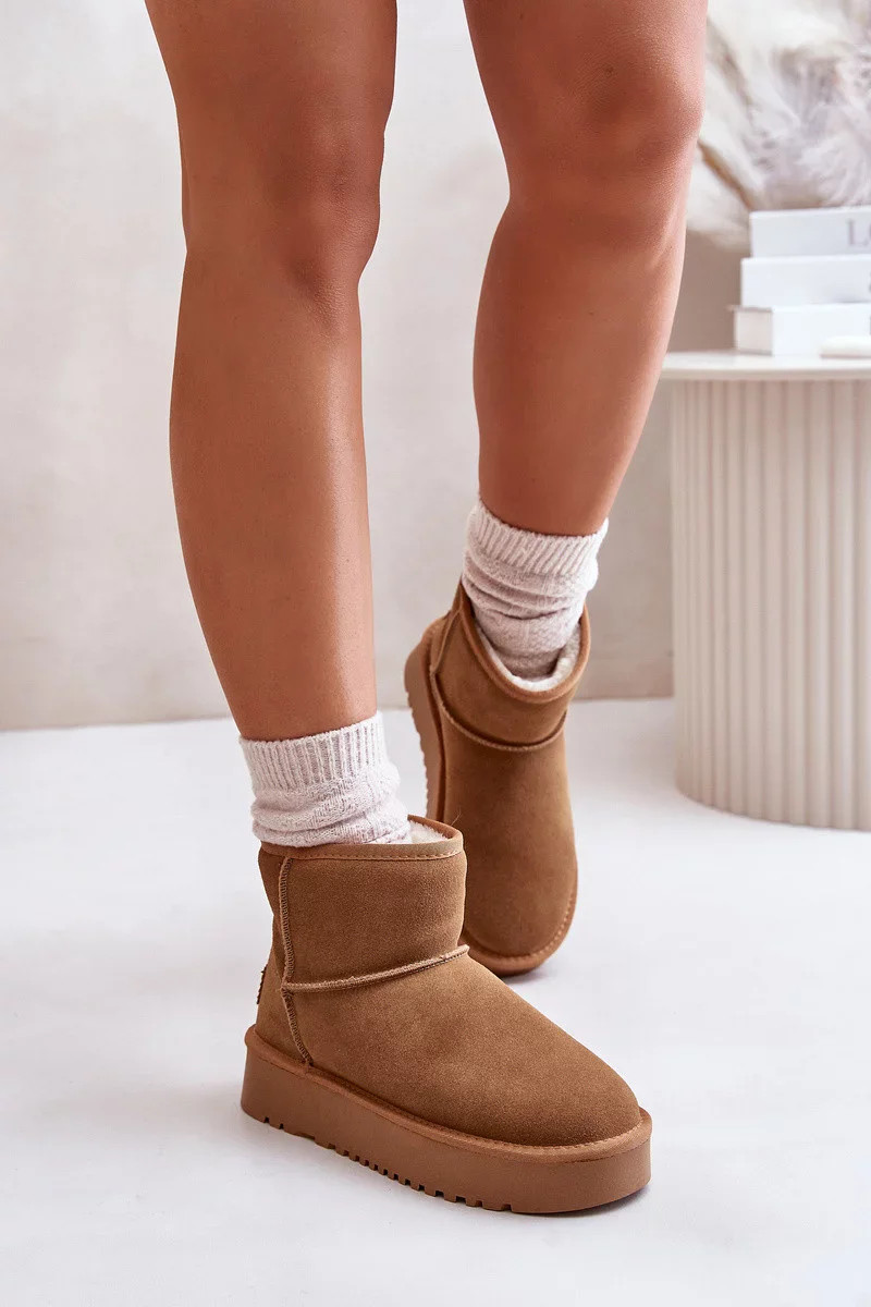 Kožené Semišové Sněhule Na Platformě Nad Kotníky Camel Rianaella