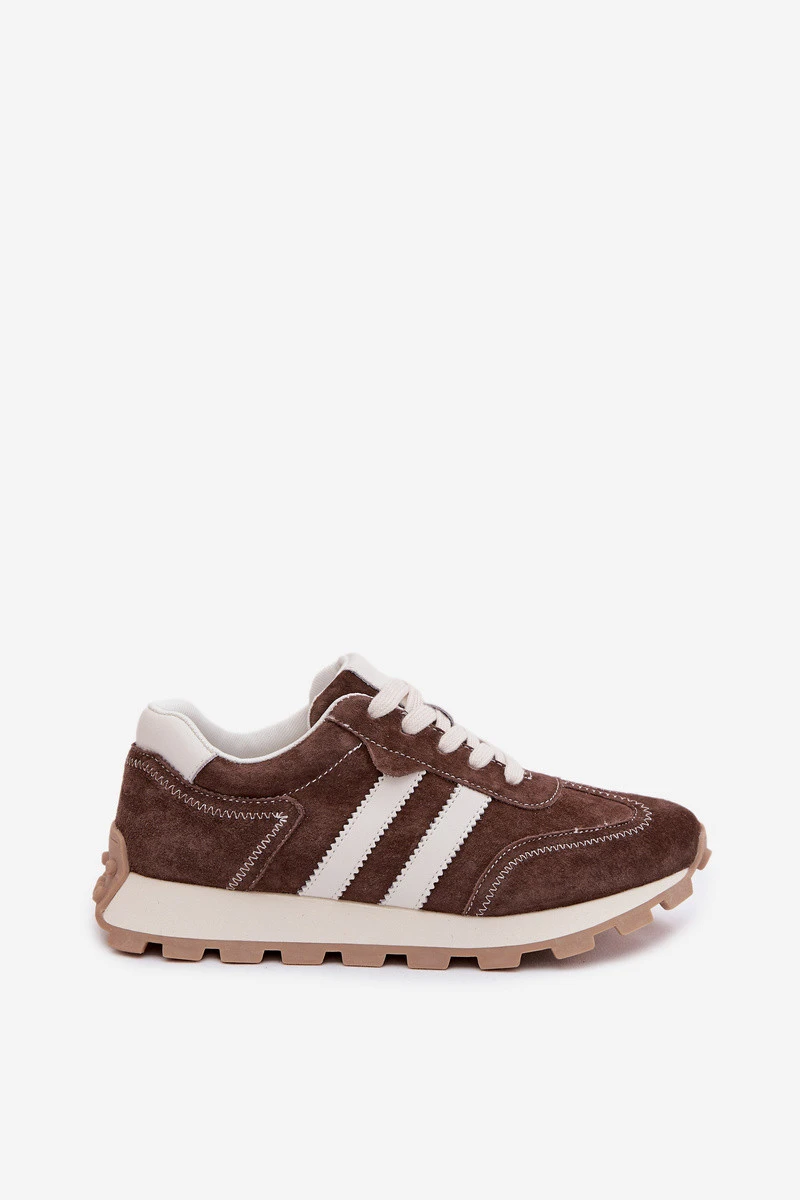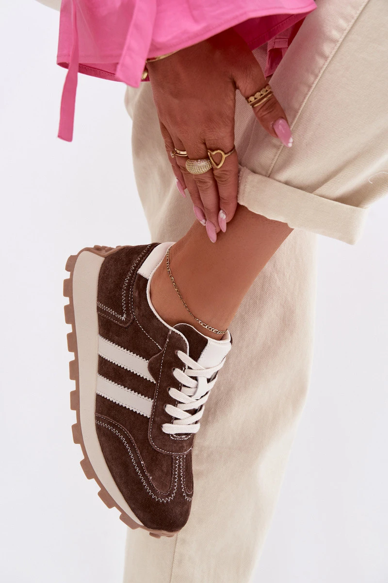 Kožené semišové tenisky dámské na platformě S.Barski LR61-7097 Čokoládové