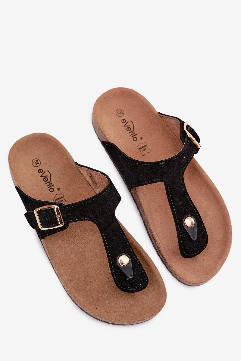 Kožené semišové žabky s zlatou sponou Černé Honey