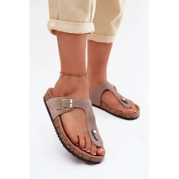 Kožené semišové žabky s zlatou sponou tmavě béžové Honey