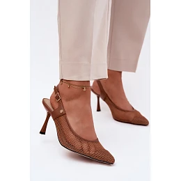 Kožené Síťované Dámské Sandály Lodičky Na Podpatku model 22123163 Hnědé - Maciejka