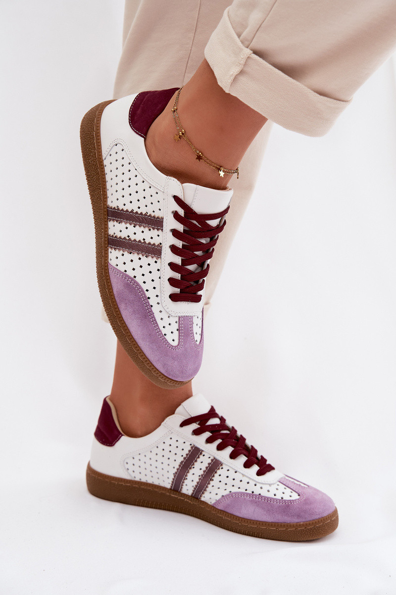 Kožené síťované dámské tenisky Zazoo N1318 bílo-fialové