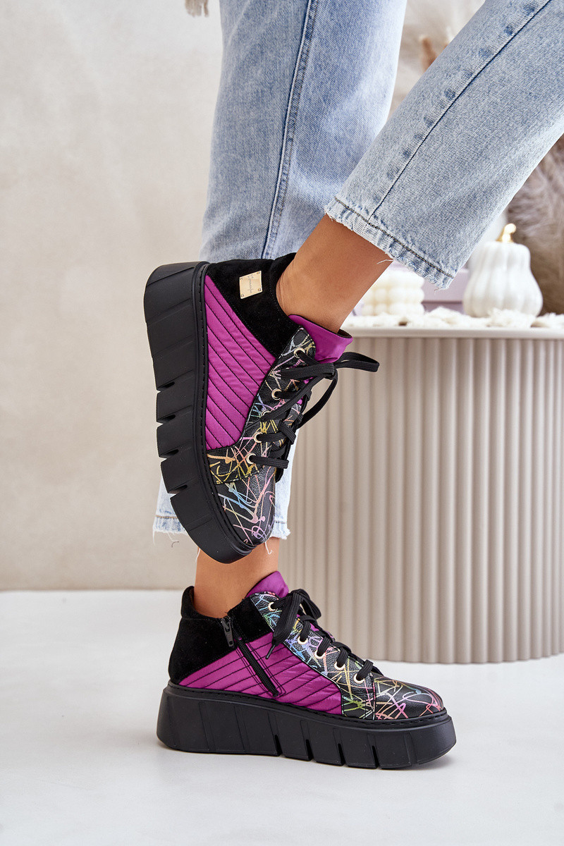 Kožené sneakersy na platformě fuchsie Maciejka 06767-15