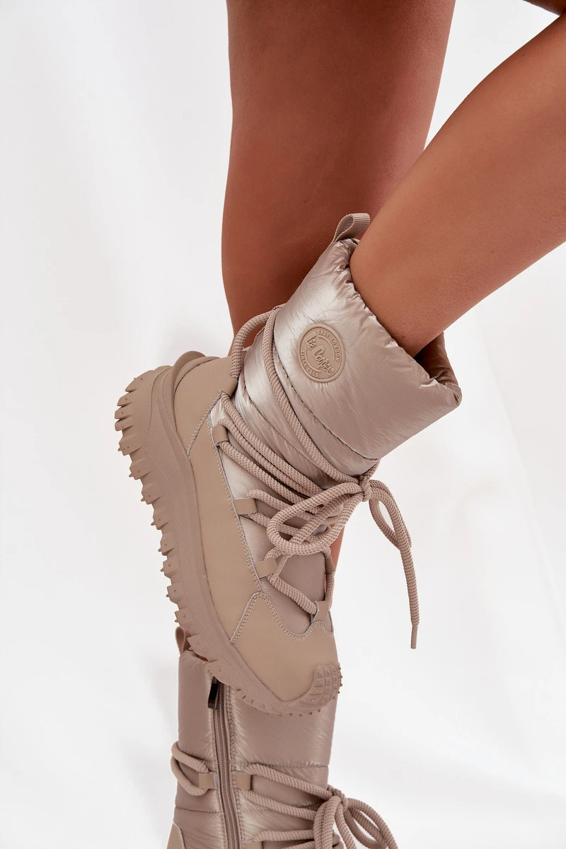 Kožené sněhule na platformě Lee Cooper LCJ-25-12-3663 béžovo-zlaté