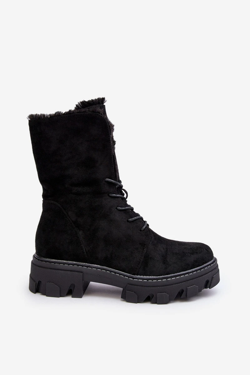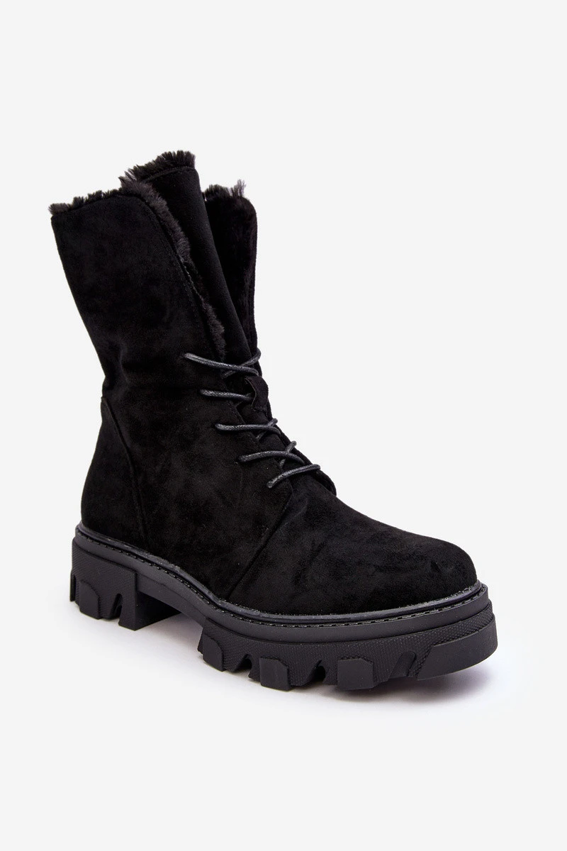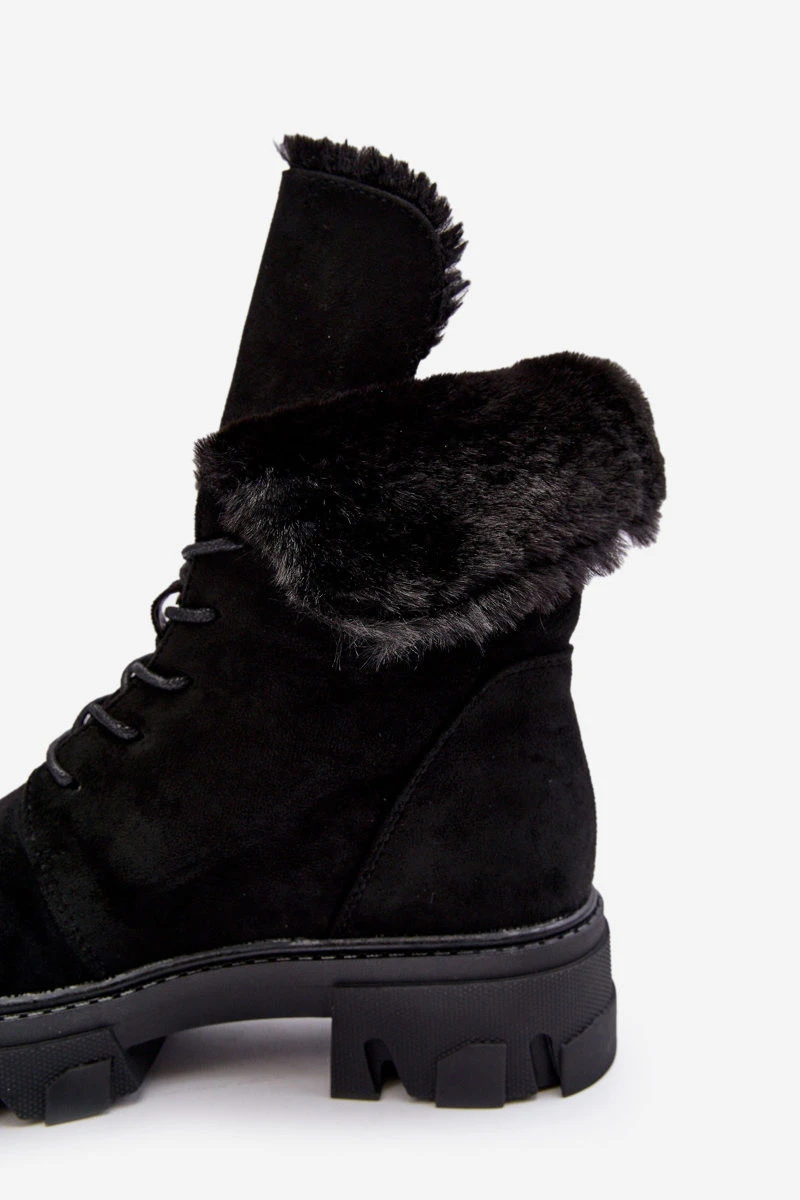 Kožené Šněrovací Boty Workery S Kožešinou Černé Frendo