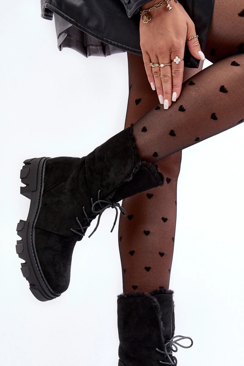 Dámské boty byly vyrobeny z hebkého ekologického semiše. Oteplená obuvním polštářkem a kožešinou. Umístěné na plochém podpatku a platformě. Špičky zaoblené, zesílený špičkový zámek. Model na zip se šněrováním. Při výběru velikosti se řiďte tabulkou velikostí.