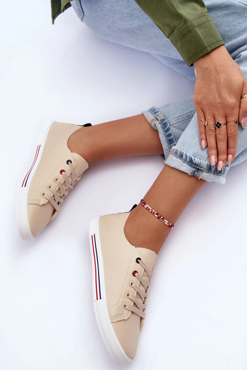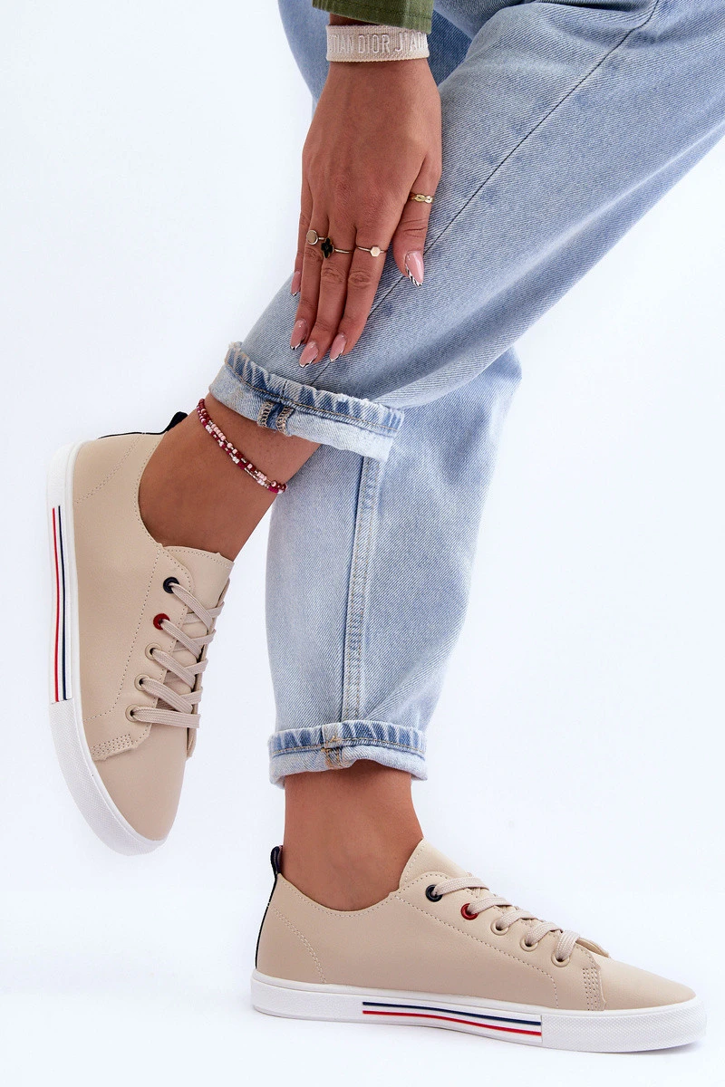 Dámské sportovní boty na nízké podešvi. Klasický model s šněrováním. Měkká vložka poskytne pohodlné nošení obuvi. Zaoblené špičky. Tyto tenisky se jistě osvědčí v mnoha stylizacích!