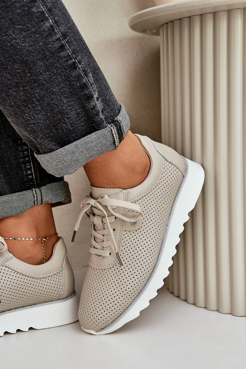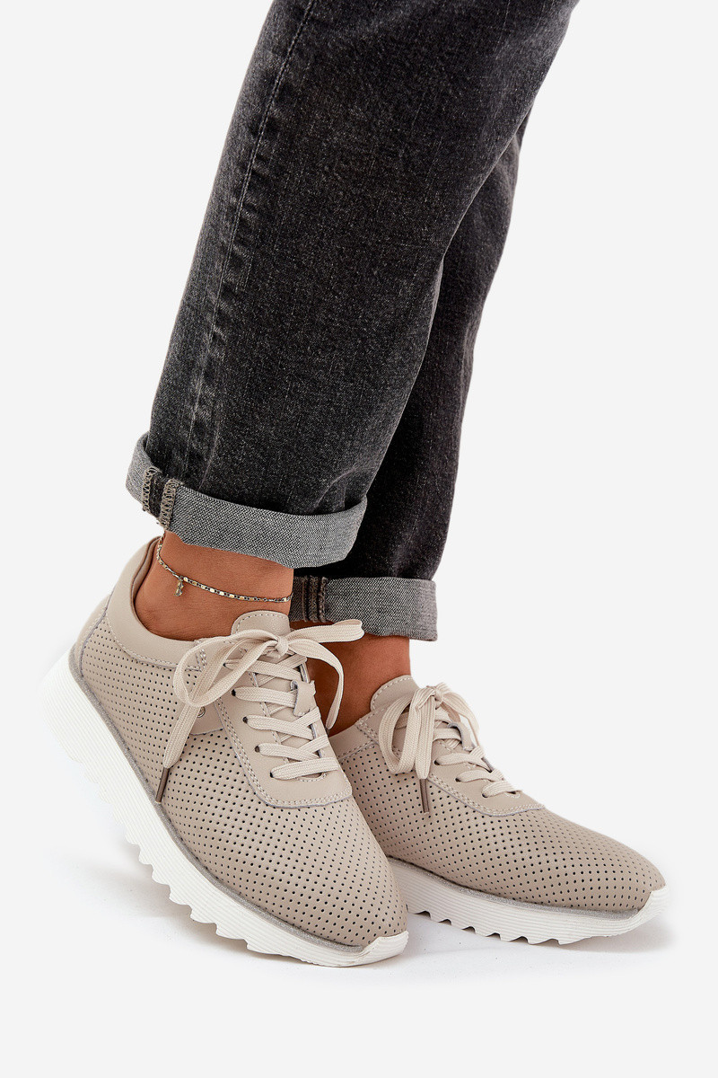 Kožené Sportovní Boty Na Platformě S Leskem D&A LR51-629 Béžové