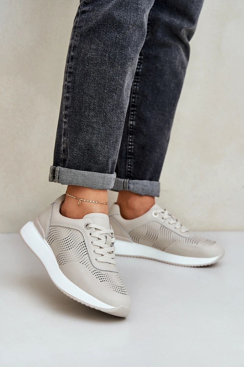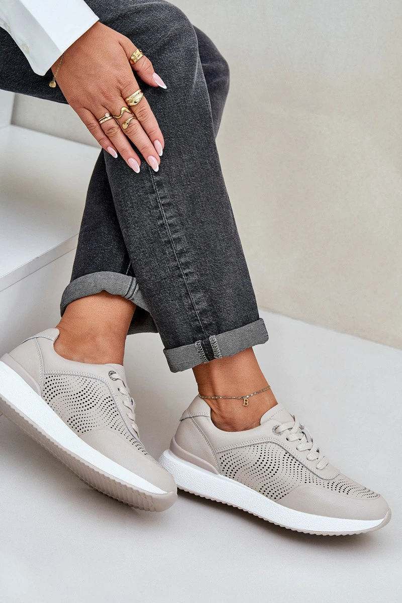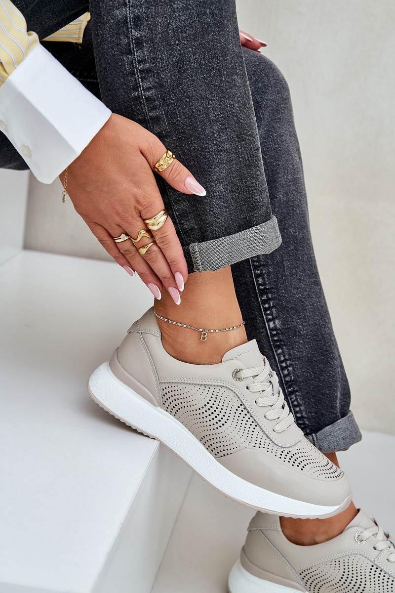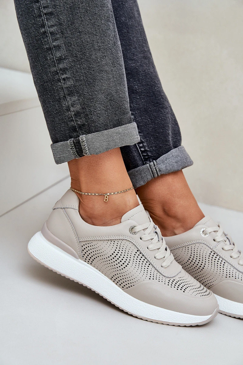 Kožené Sportovní Boty Tenisky Dámské model 21686175 Béžové - S.Barski