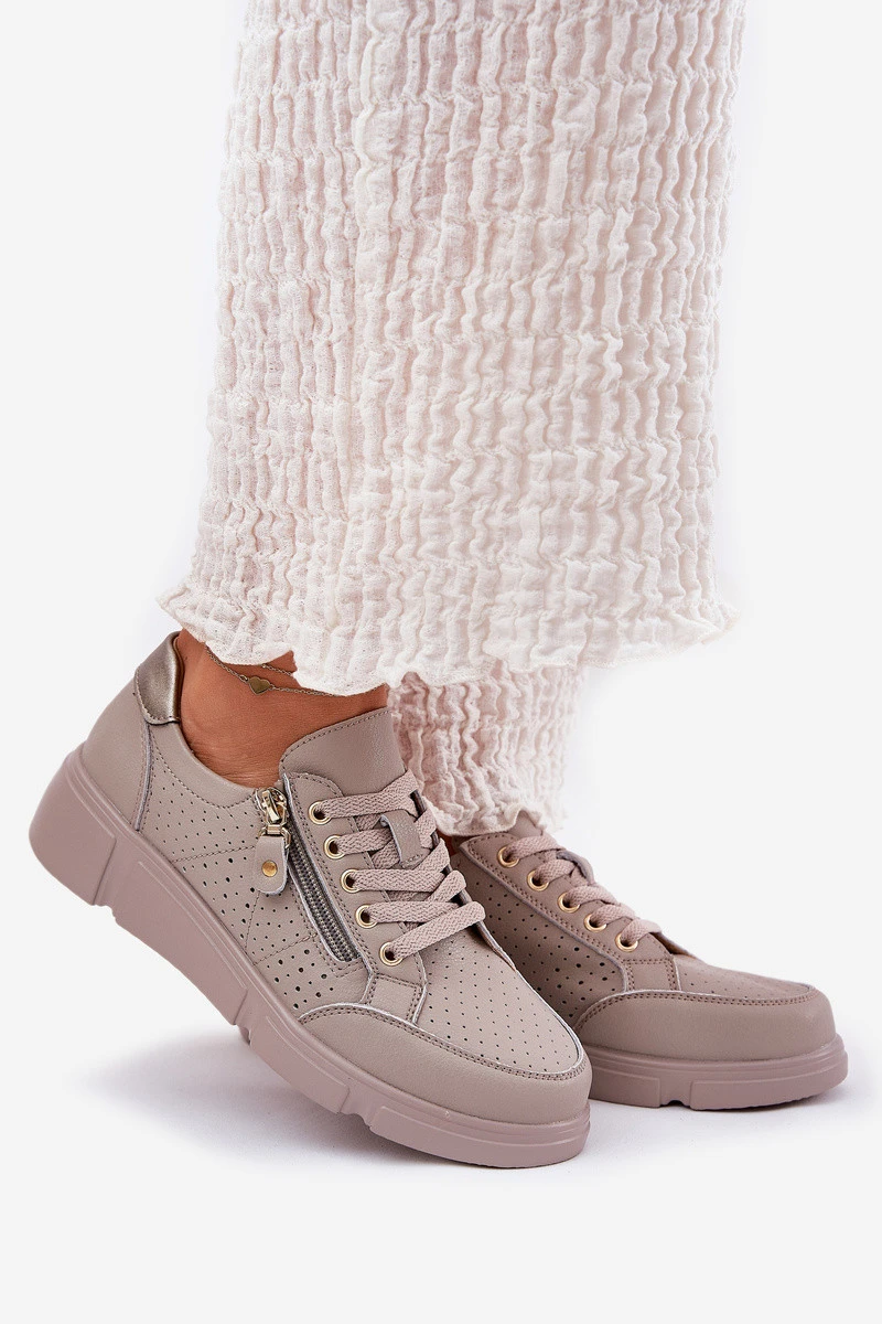 Kožené Sportovní Boty Tenisky Na Platformě Se Zipem Vinceza 88019 Tmavě Béžové
