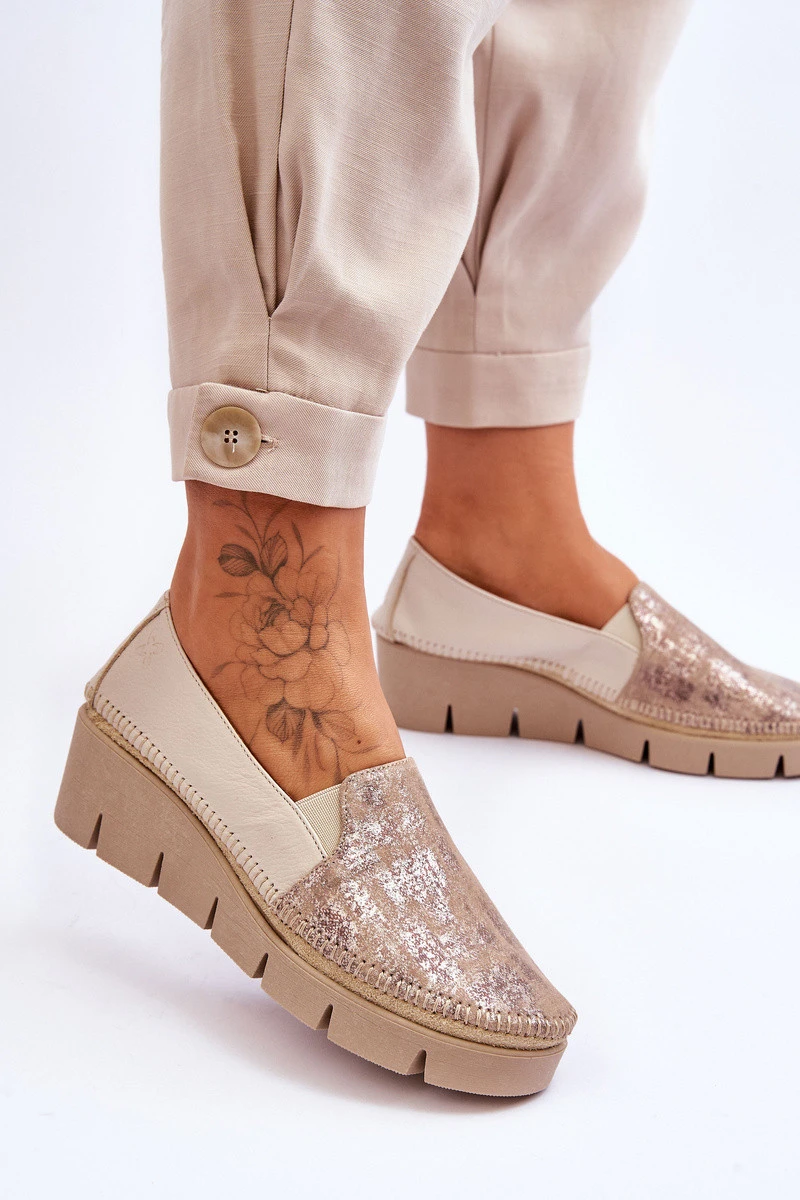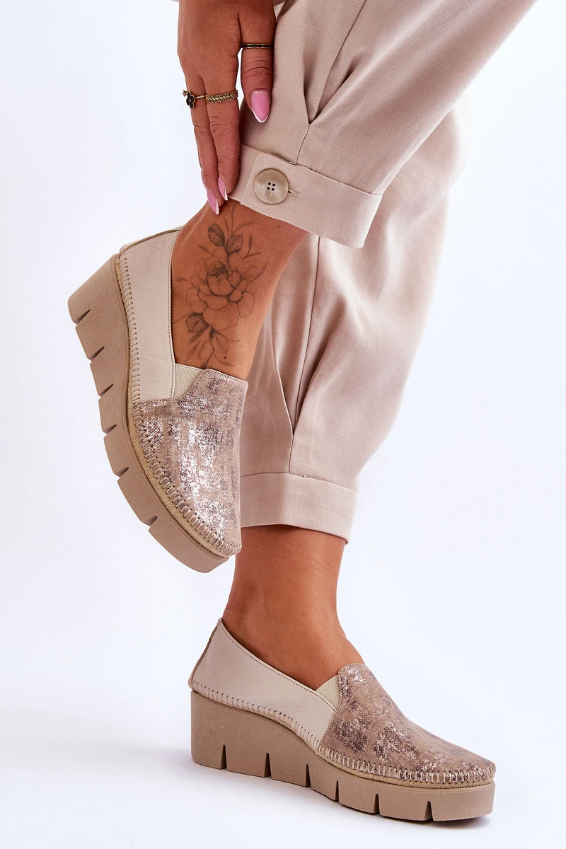 Kožené tenisky na klínku Maciejka 5814A-10 Béžová