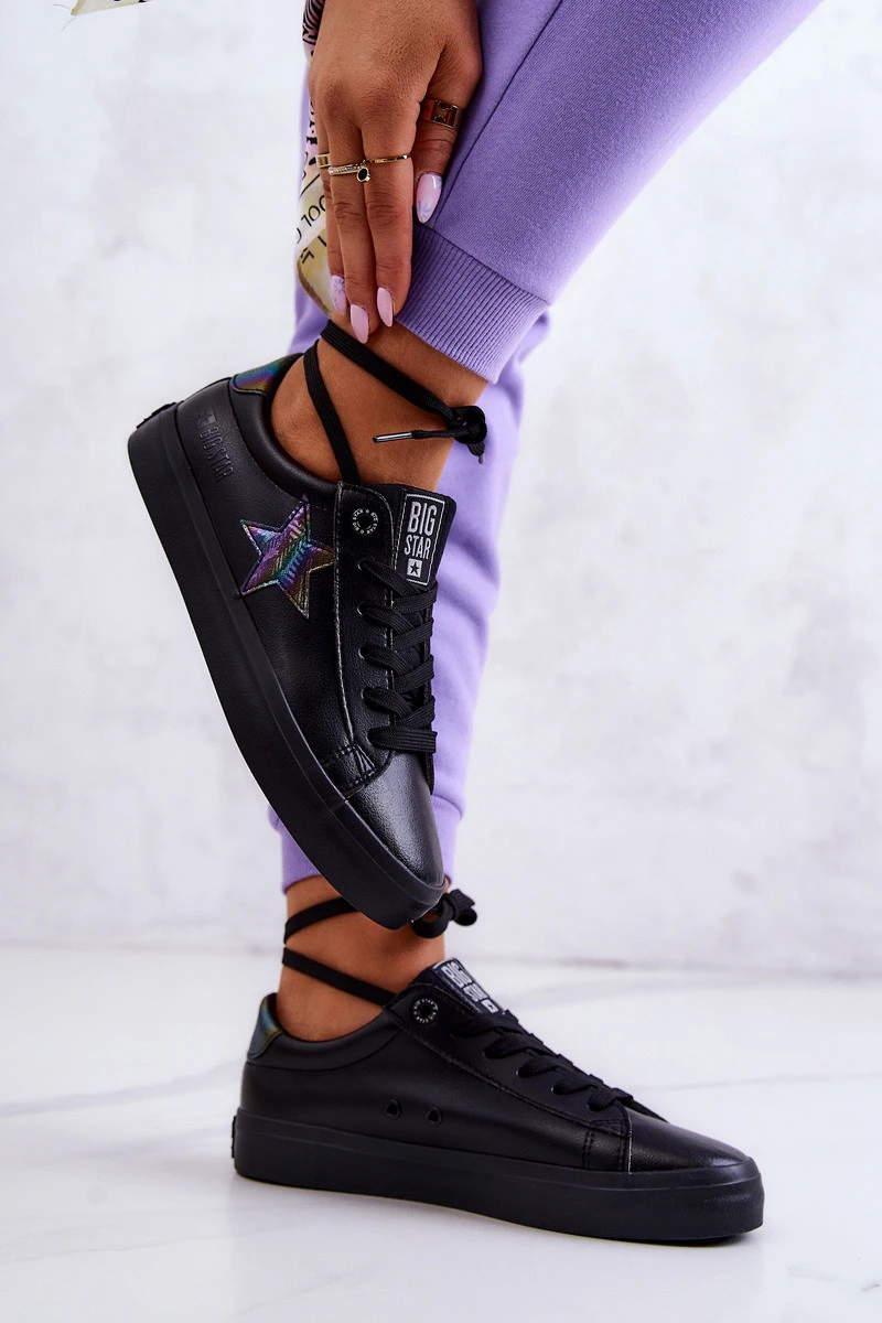 Tenisky Big Star vyrobené z odolné eko kůže. Na boku svršku všitá třpytivá hvězda. Podešev bot je vyrobena z kvalitního pryžového materiálu, který zajistí kvalitní používání. Vázání zabrání uklouznutí a umožní, aby správně přiléhalo k noze. Módní a pohodlné. Tento model se bude hodit na každodenní nákupy nebo procházky. Boty mají stélku z odolného a oděruvzdorného materiálu. Při výběru velikosti použijte tabulku velikostí.