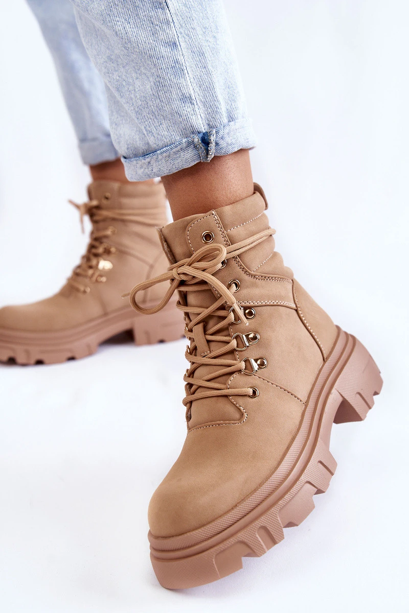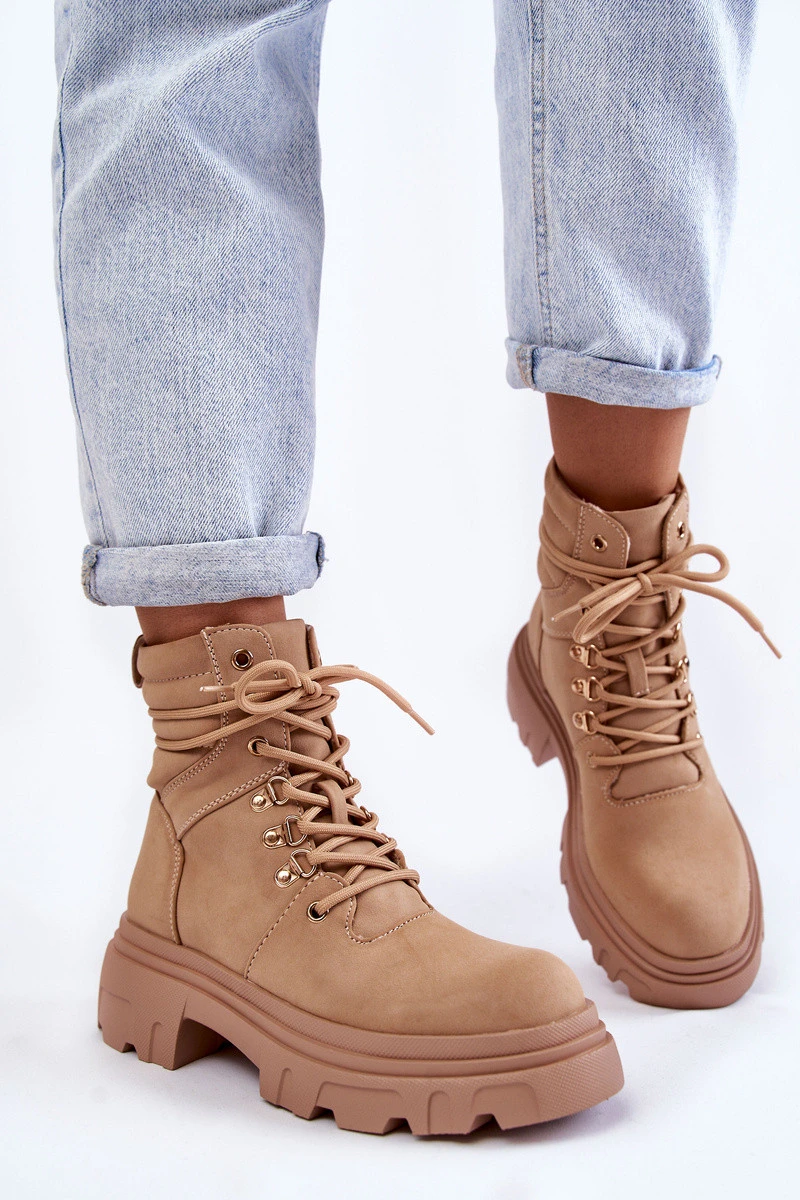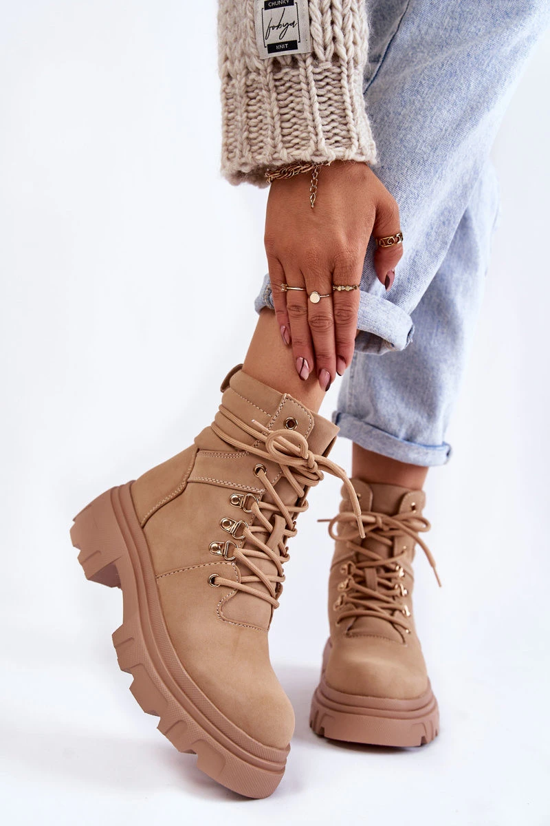 Kožené teplé šněrovací boty Béžové model 21603028 - EVENTO
