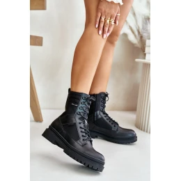 Kožené Traperky Kotníkové Boty Pánské Zateplené Big Star OO174164 Černé