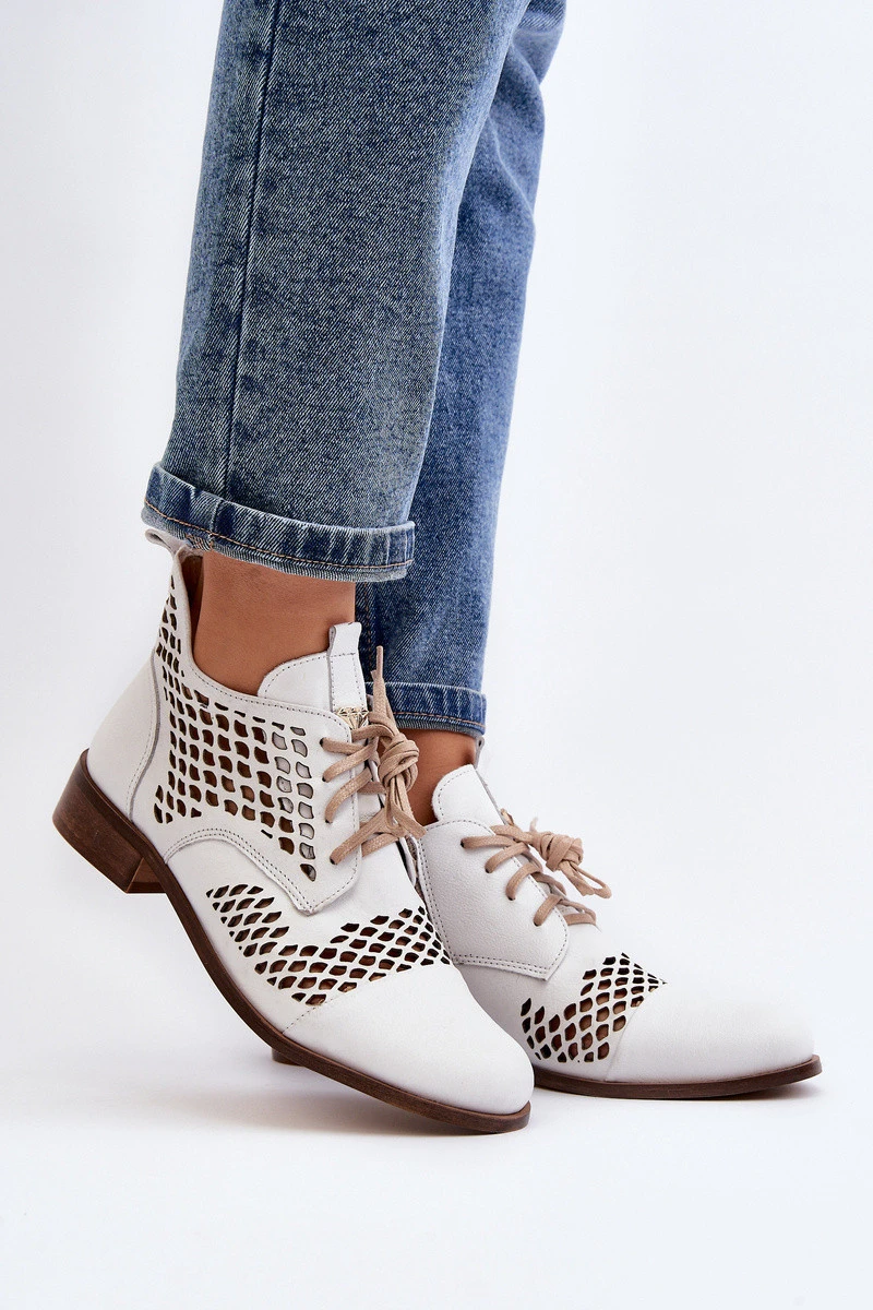 Kožené vyšívané boty Zazoo 2704 Bílé