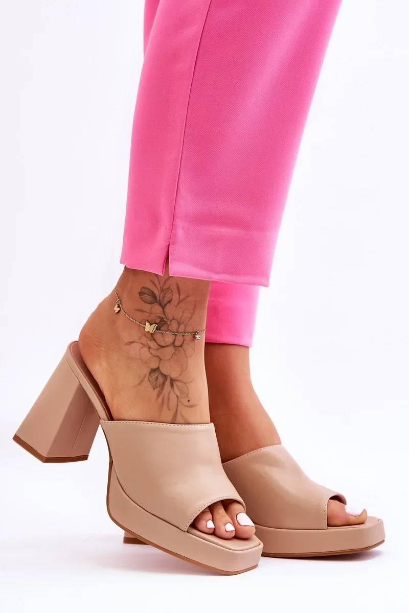 Klasické dámské pantofle jsou osazeny na podpatku v podobě masivního sloupku. Vyrobeno výhradně z eko kůže. Uvnitř mají gumičku, která umožní obuvi správně sedět na délku nohy. Měkká stélka zajistí pohodlné používání obuvi i po celý den. Klasický střih s otevřenou hranatou špičkou. Při výběru velikosti se řiďte tabulkou velikostí.