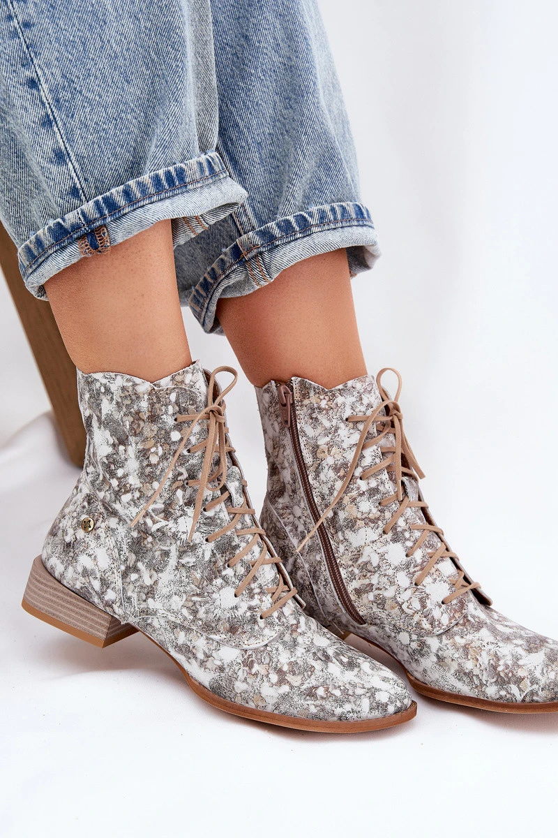 Kožené Vzorované Kotníkové Boty Na Ploché Podpatky Maciejka 06391-25 Béžové