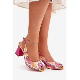 Kožené Vzorované Sandály Dámské Na Podpatku D&A CR51-006 Multikolor