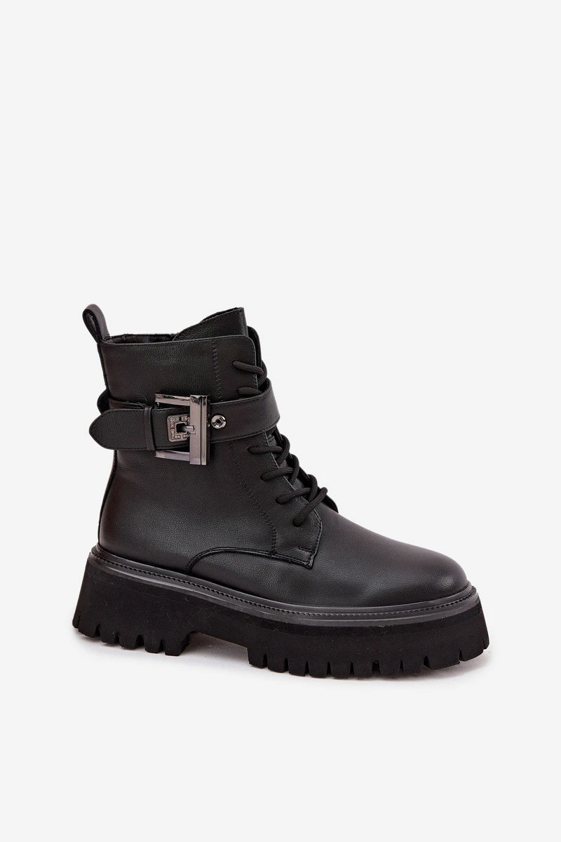 Dámské workery vyrobené z přírodní kůže. Model na platformě zajišťuje stabilitu a pohodlí při nošení. Boty jsou šněrovací a na zip, což usnadňuje nazouvání a dokonale sedí na noze. Uvnitř jsou vyhřívané, což zaručuje komfort a teplo v chladnějších dnech. Dekorativní pásek s přezkou jim dodává charakter a módní, lehce rockový styl. Ideální volba pro každodenní styly. Při výběru velikosti prosíme dle tabulky velikostí. Při výběru velikosti se řiďte tabulkou velikostí.