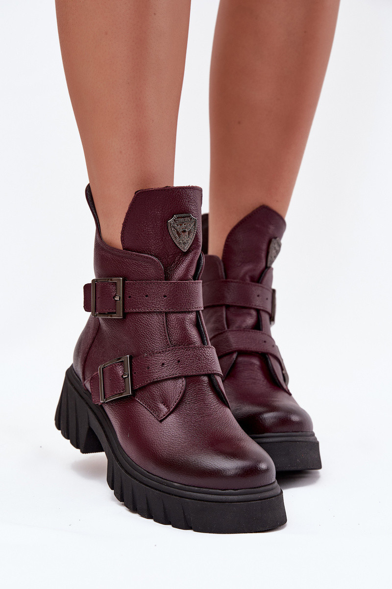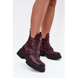 Kožené zateplené dámské boty s přezkami a ozdobným detailem model 21707581 bordó - Zazoo