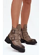 Kožené zateplené dámské boty s přezkami a ozdobným detailem Zazoo 60482 čokoládové