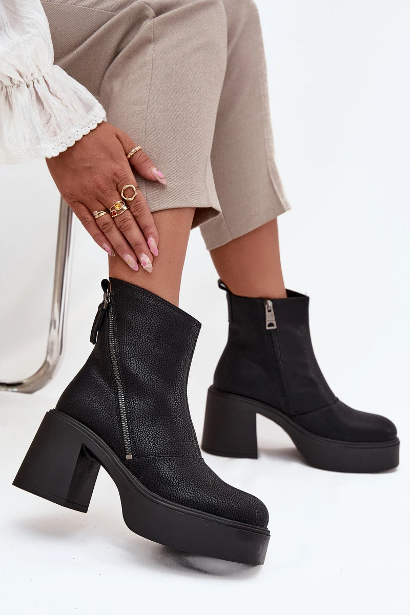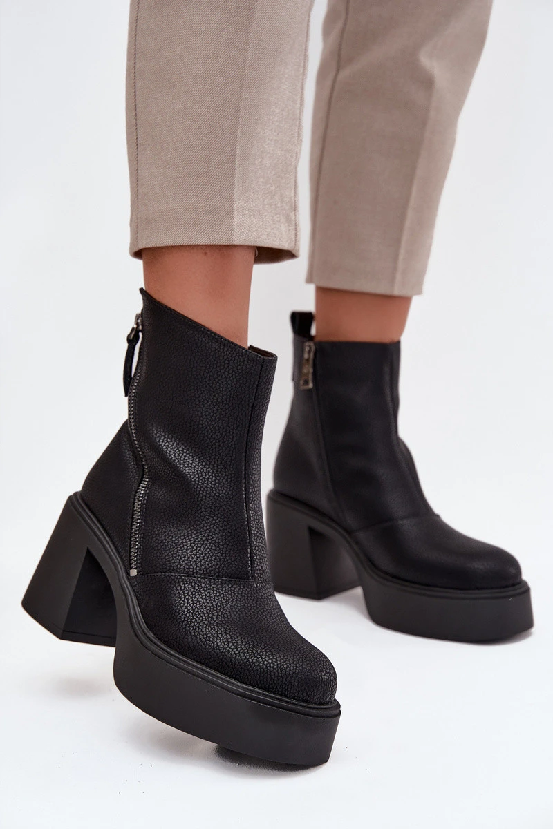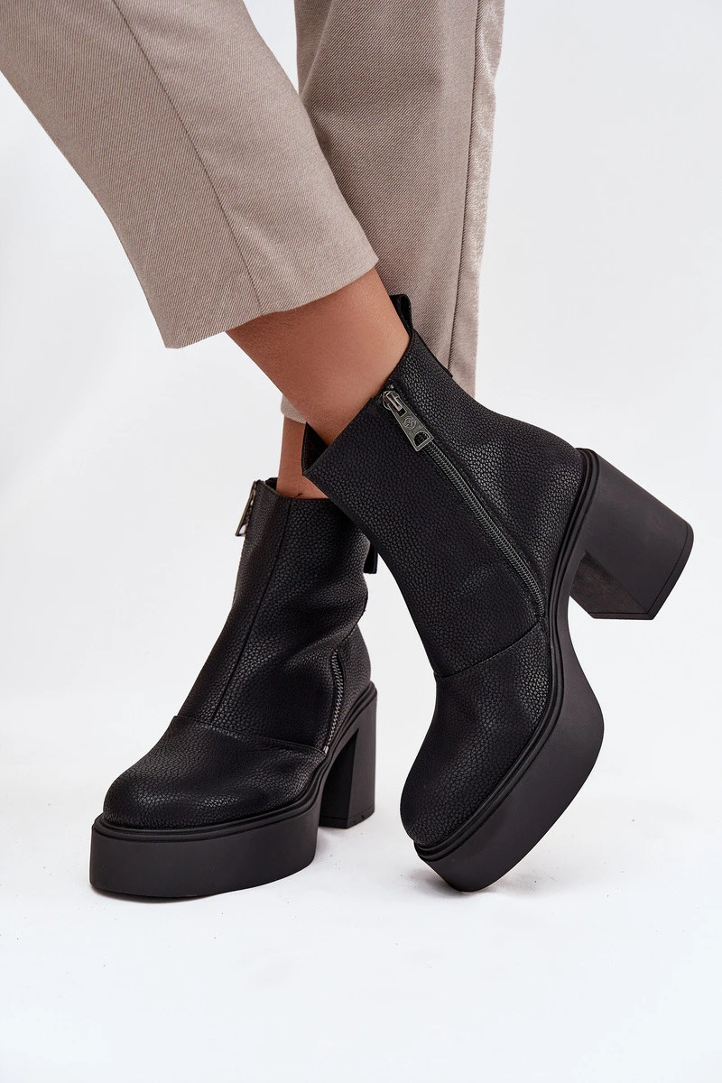 Dámské kotníkové boty z pravé kůže značky Vinceza jsou návrhem vytvořeným pro ženy, které hledají eleganci v kombinaci s pohodlím a funkčností. Vyrobené z pravé kůže, vypadají velmi stylově a nadčasově, zdůrazňující charakter každého outfitu. Model je osazen na stabilním podpatku ve tvaru sloupku s přídavnou platformou, což zaručuje pohodlí při nošení a zároveň jemně prodlužuje siluetu a dodává jí lehkost. Boty se zapínají na praktický zip, který usnadňuje jejich oblékání a svlékání. Navíc druhý ozdobný zip umístěný na boku lýtka slouží jako módní detail, který dodává celku moderní a originální charakter. Vnitřek obuvi je vyložen měkkým, příjemným materiálem, díky čemuž jsou skvělé do chladnějších dnů, zajišťující tepelný komfort a pohodlí při nošení. Tento model se skvěle hodí jak do volnočasových, tak i do elegantnějších outfitů, stává se působivým a praktickým prvkem dámského šatníku. Při výběru velikosti doporučujeme sledovat tabulku velikostí. Při výběru velikosti se řiďte tabulkou velikostí.