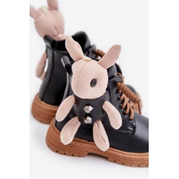 Kožené Zateplené Dětské Boty Na Zip S Medvídkem Černé model 21675598 - VINCEZA