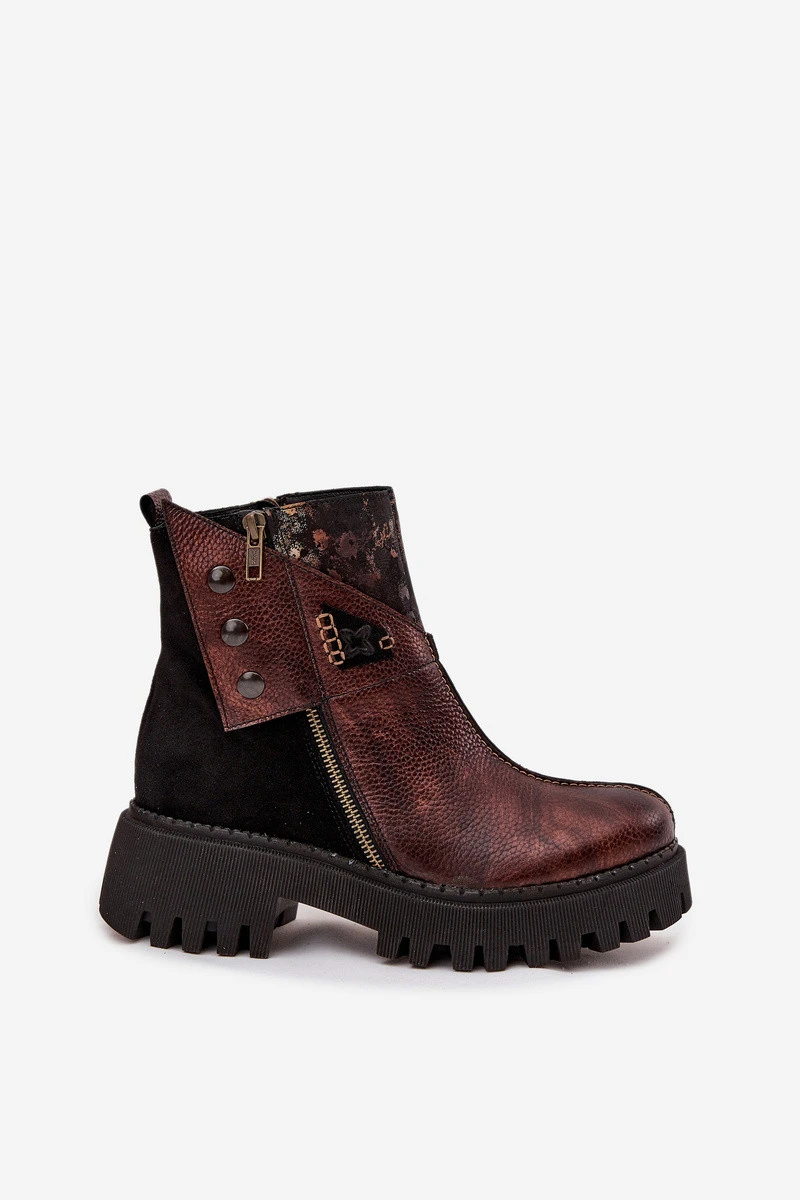 Kožené zateplené kotníkové boty na platformě a plochém podpatku Maciejka 06140-02 hnědé