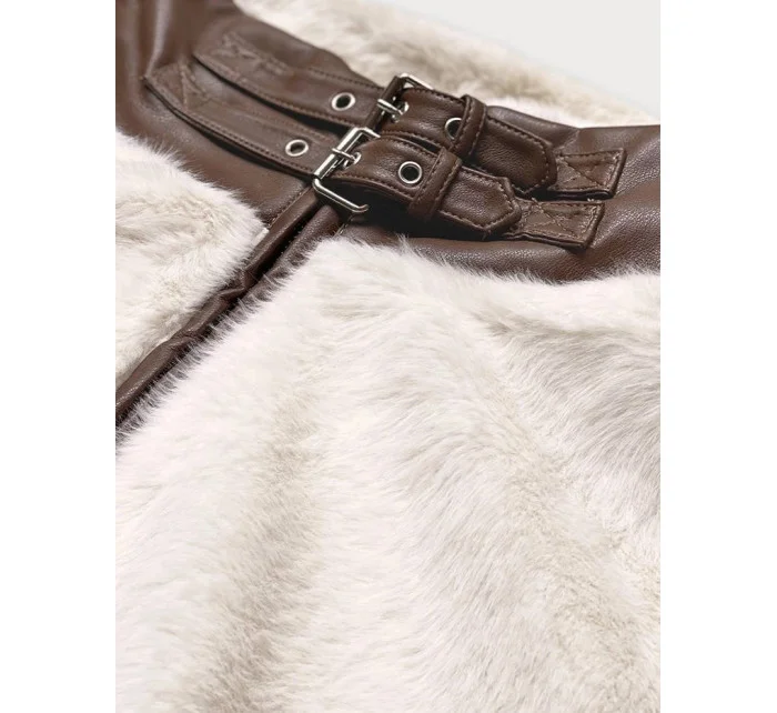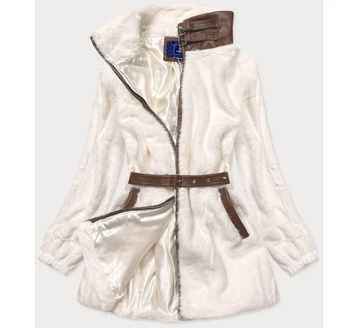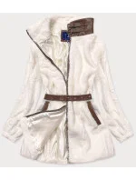 Kožešinová bunda v ecru barvě se stojáčkem (GSQ2228)