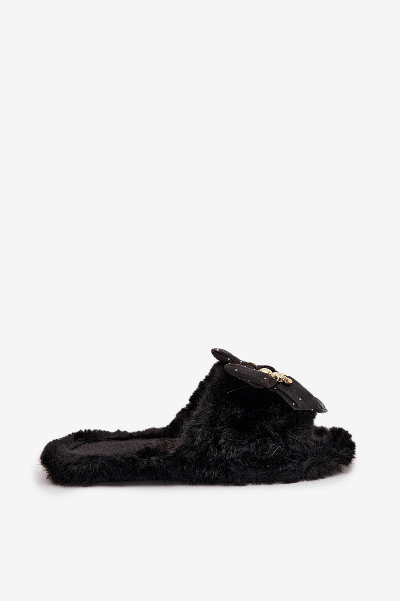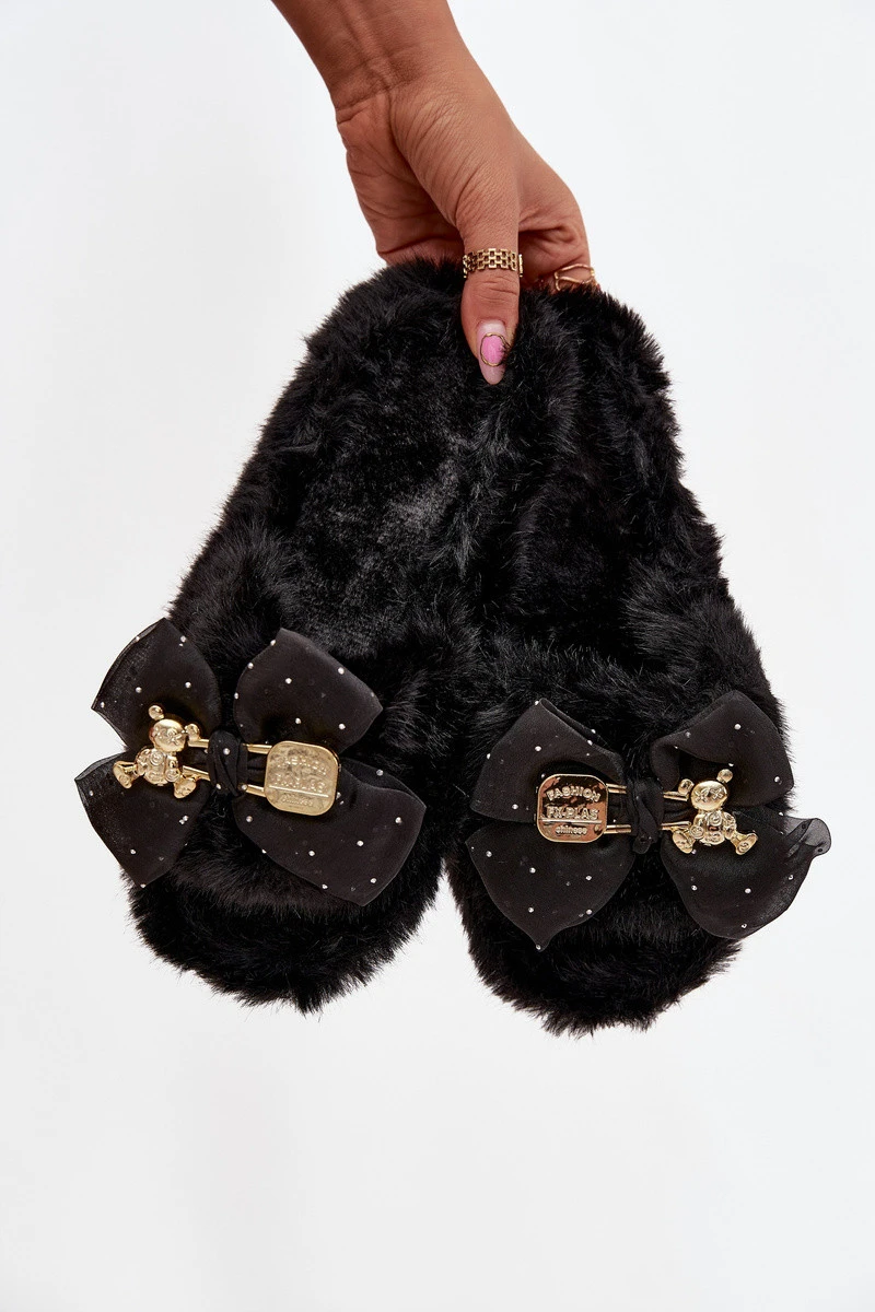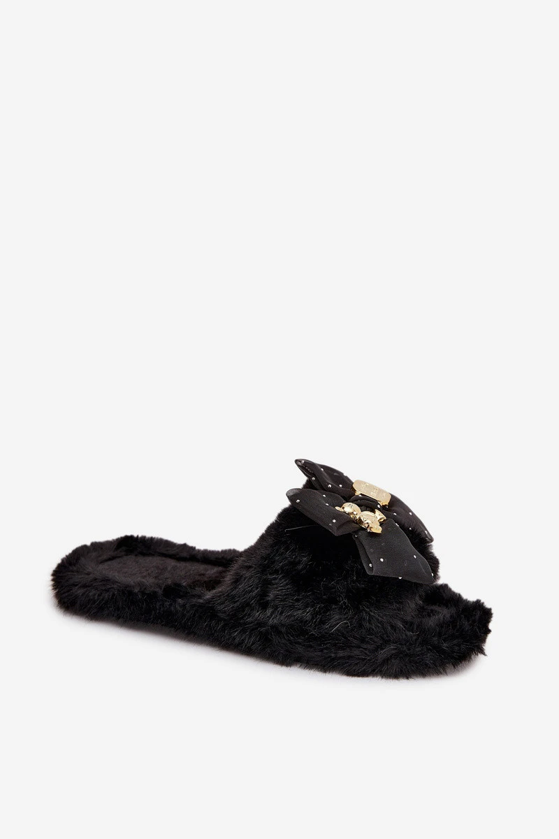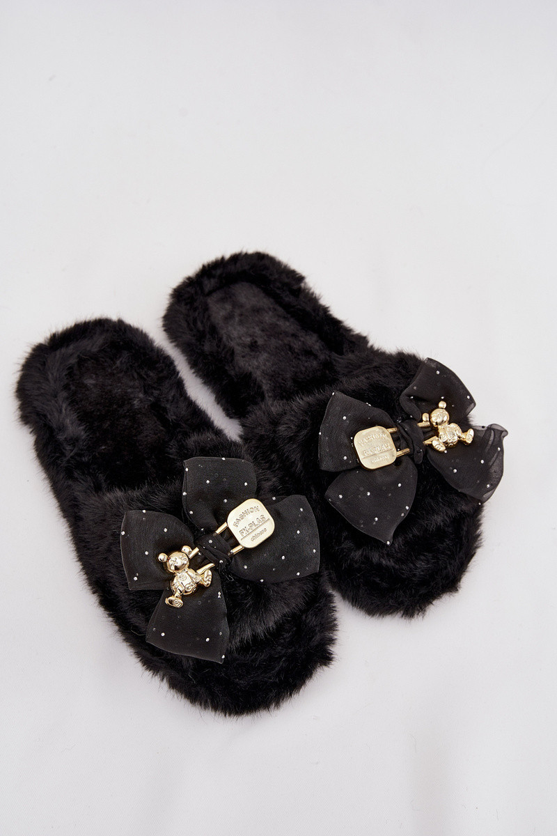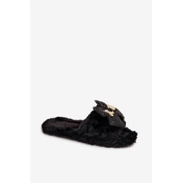 Přidání recenze k Kožešinové dámské pantofle s mašlí a zlatým zdobením Černé Nolara