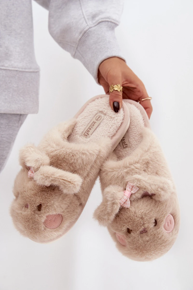 Kožešinové domácí pantofle dámské s oušky a mašličkou Béžové Corayne