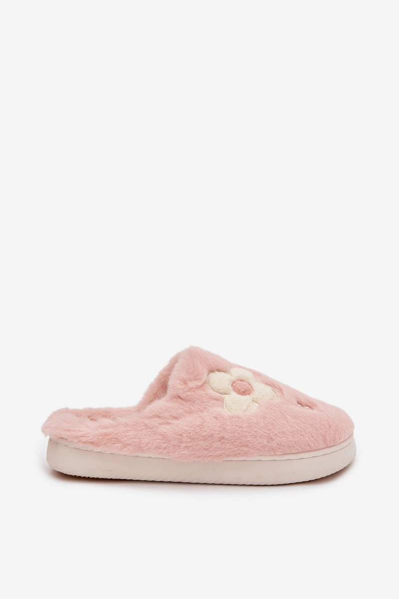 Kožešinové pantofle s květinami Růžové Selinne