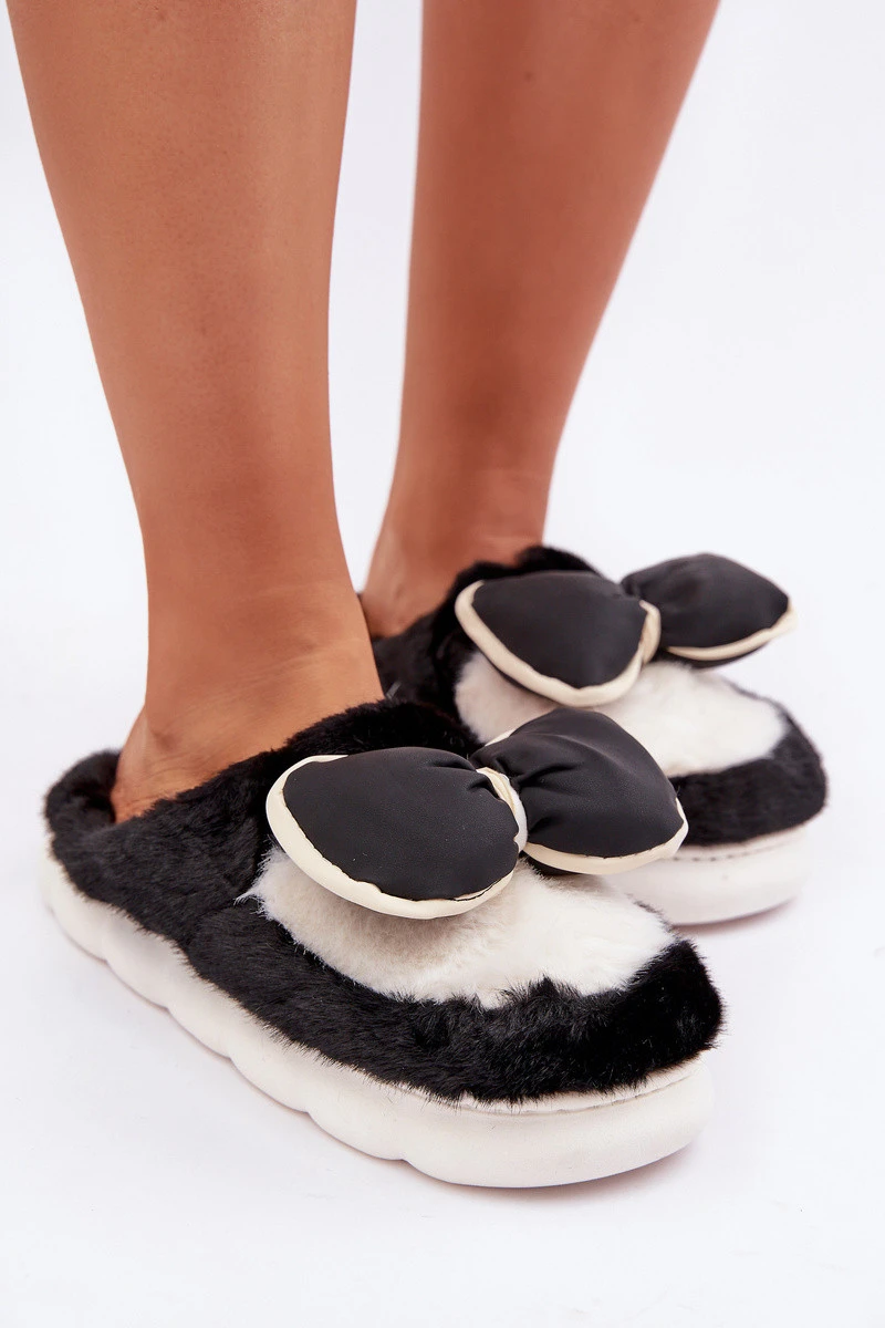Kožešinové Pantofle S Mašlí Černé Grilis