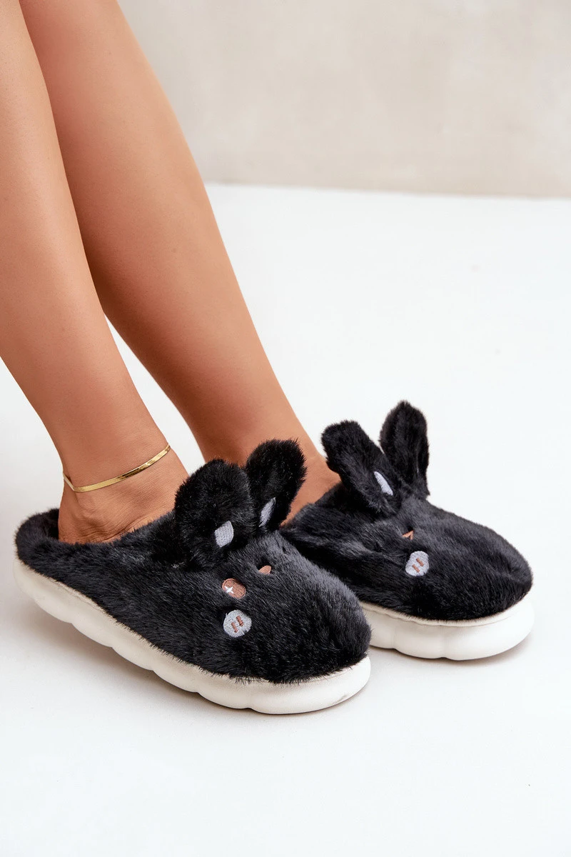 Kožešinové Pantofle S Motivem Králíčka Černé Natasha