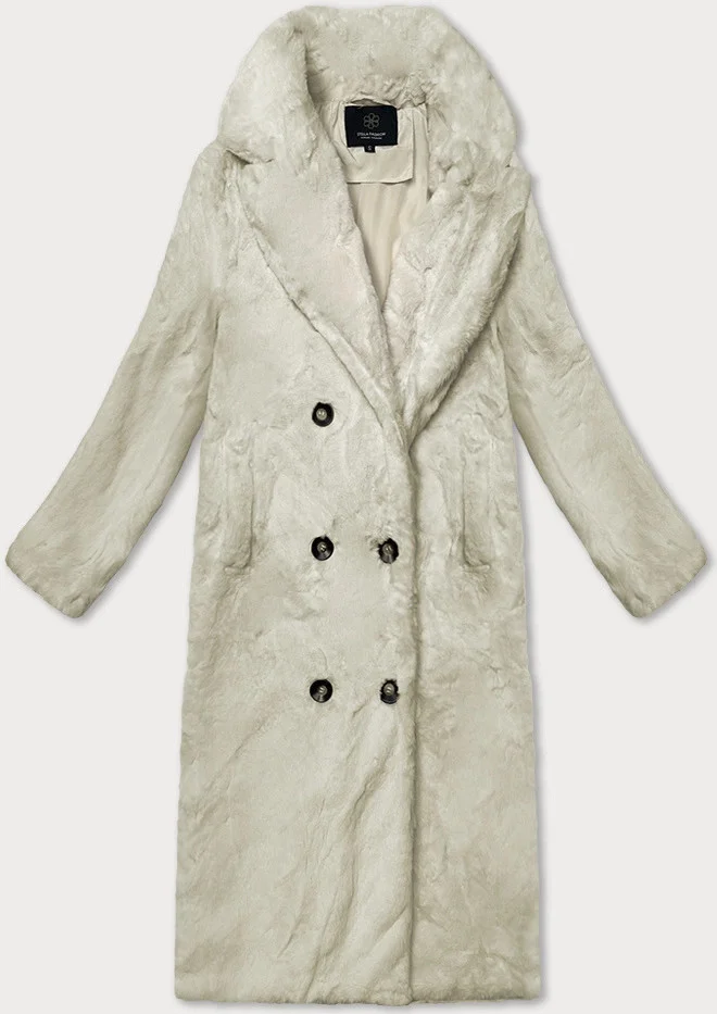 Kožešinový dámský kabát v bervě ecru s límcem (WD2332)