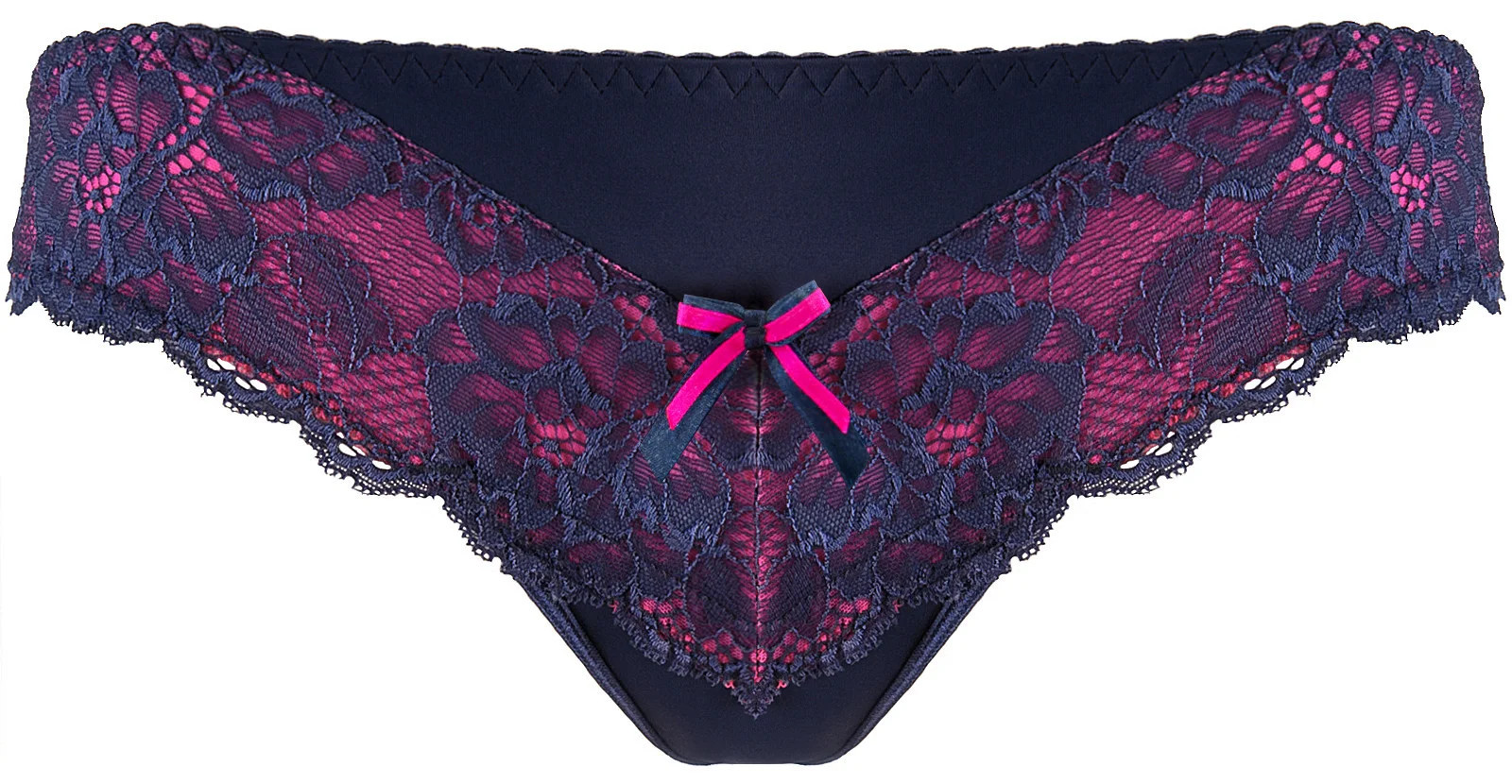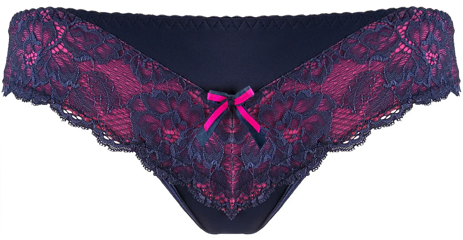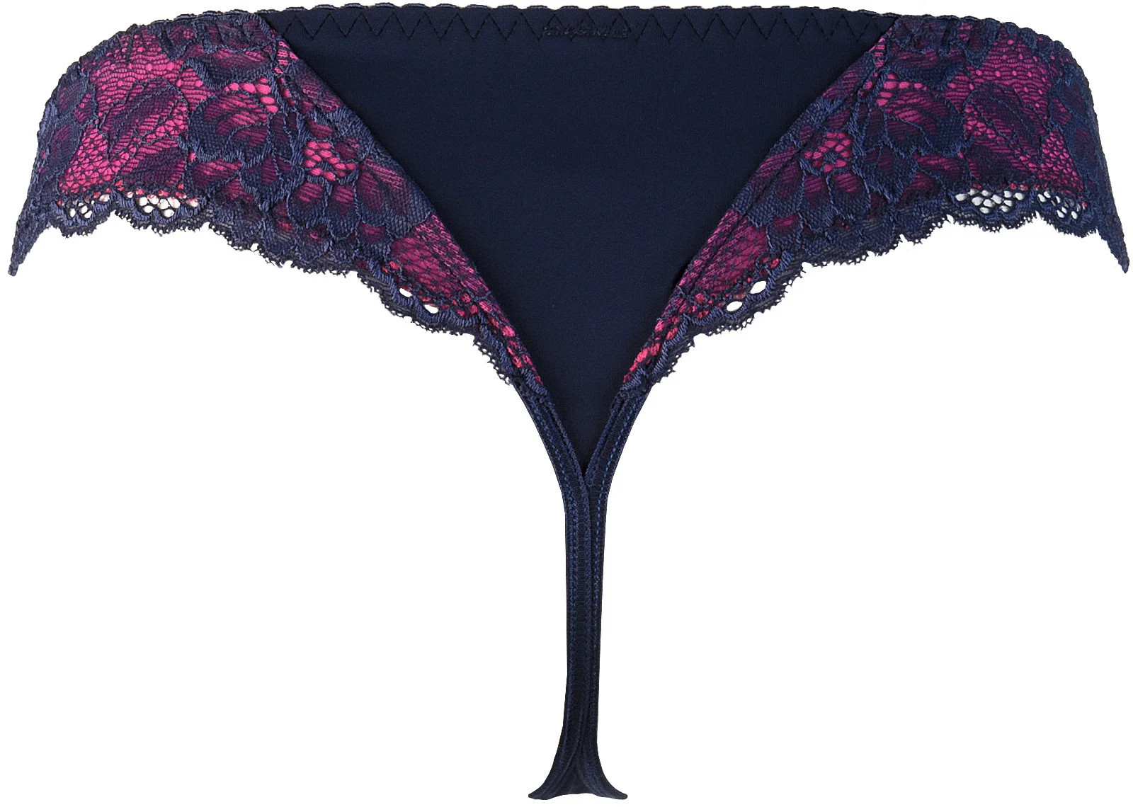 Perfekt modellierter und mit Spitze besetzter String in Marineblau mit kontrastierendem Rosa ergänzt wunderbar den charmanten BH V-9411 und bildet ein unvergesslich charmantes Set. Materiálové složení: polyamid 82 %, elastan 10 %, bavlna 8 %