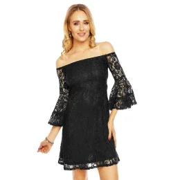Přidání recenze k Krajkové dámské šaty s lodičkovým výstřihem a širokými rukávy černé - Černá - MAYAADI