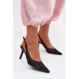 Krajkové Síťované Sandály na Podpatku Černé model 22103229 - Boto