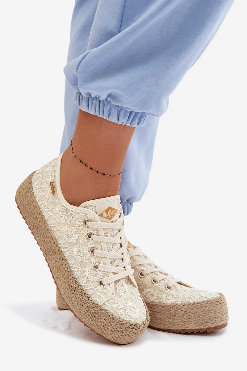 Krajkové tenisky Espadryle na platformě Lee Cooper LCW-26-31-4328 Béžové